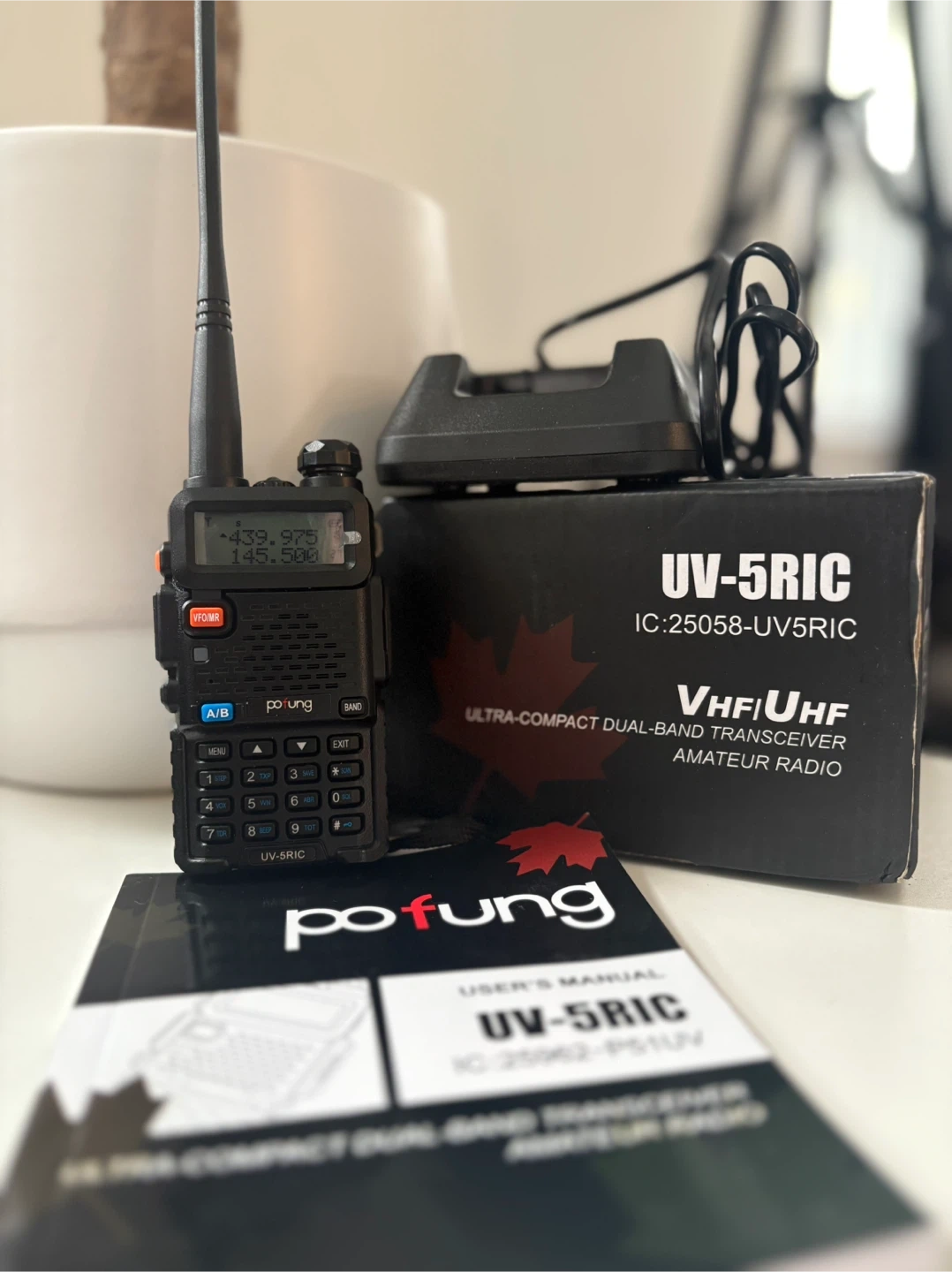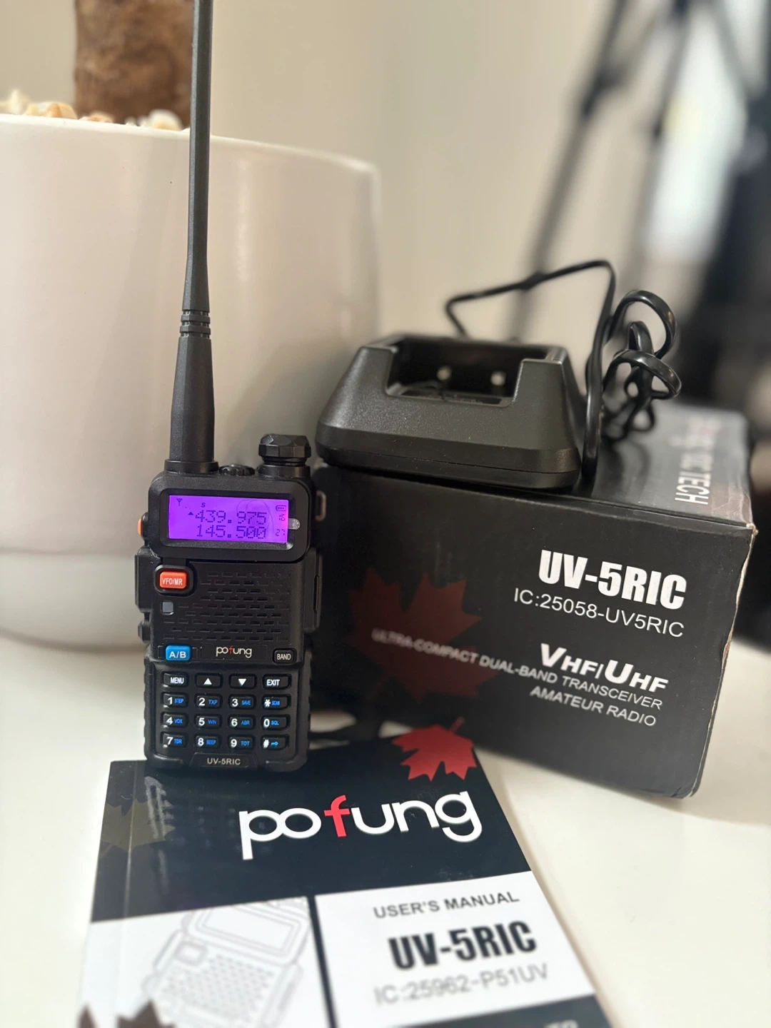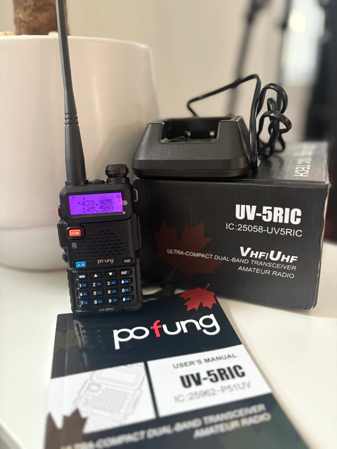 10Selling a Pofung UV-5RIC ultra-compact dual-band transceiver amateur radio. It comes with the user's manual, charging dock, and the original box. Great for anyone interested in amateur radio!