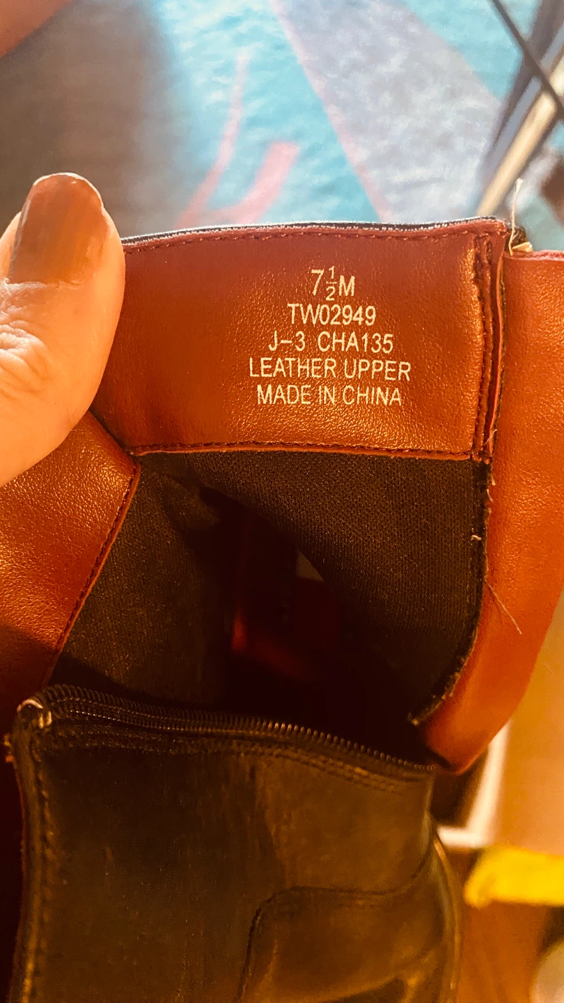 Selling a pair of stylish leather ankle boots in size 7.5M. They're in good condition and ready for a new home! The leather upper gives them a classic look, and they're made in China.