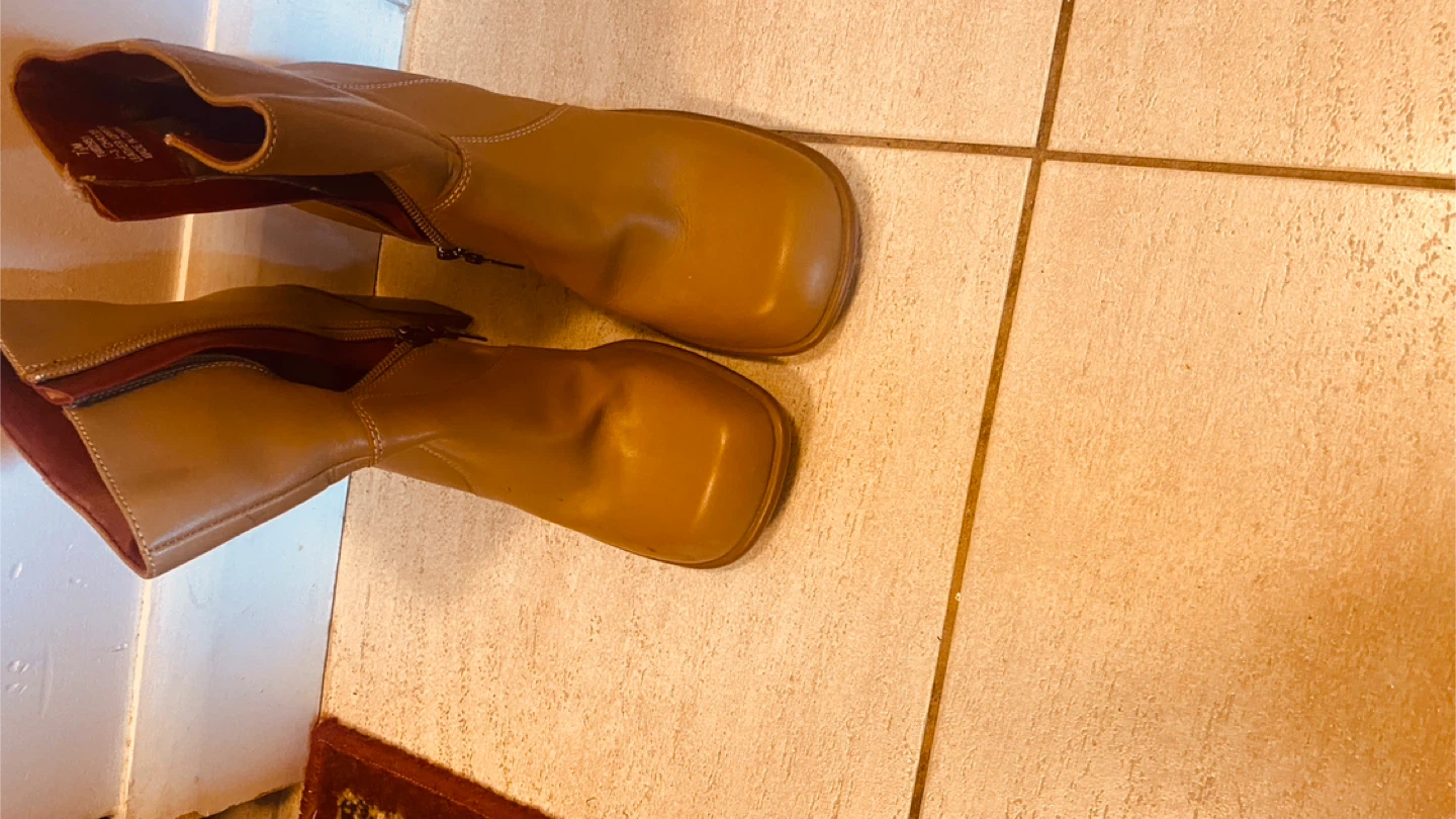 Selling a pair of Tommy Hilfiger ankle boots in a lovely tan colour. They are a size 7.5 and feature a leather upper. These boots have a stylish, chunky heel and a comfortable fit. Perfect for adding a bit of flair to your everyday outfits!
