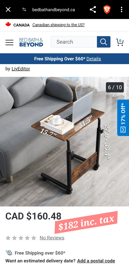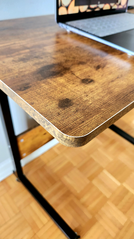 This portable desk is brand new and still in box. The height is adjustable, the wheels are lockable, and easy to move around. Please don't ask for lower price (orig is $182 inc. tax without assembly), so save $ and time.