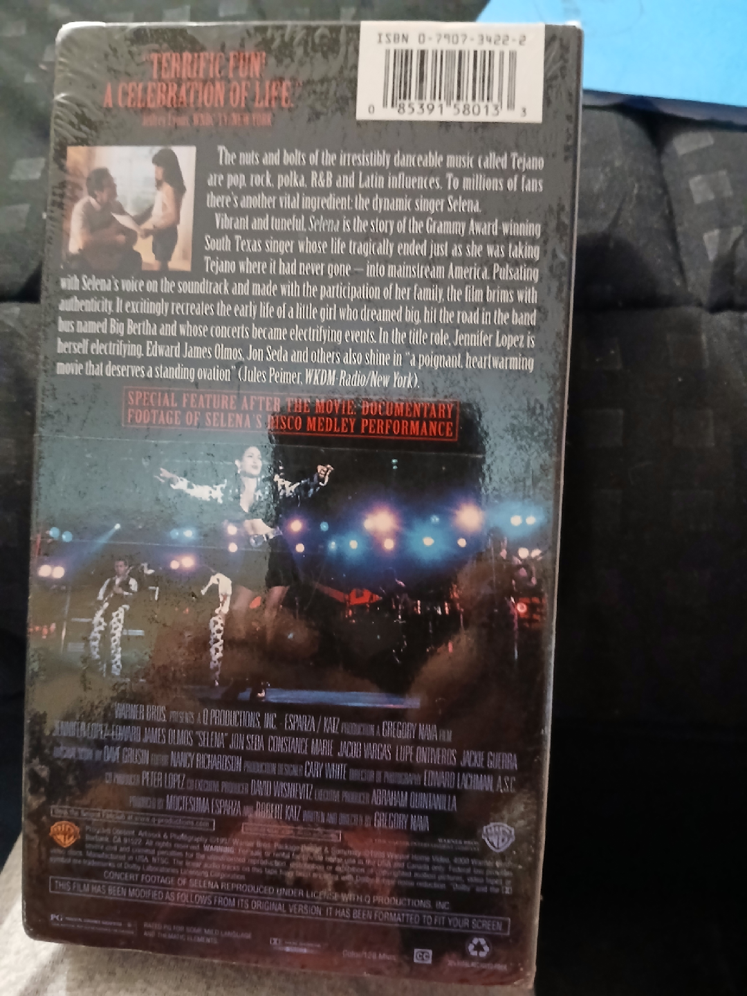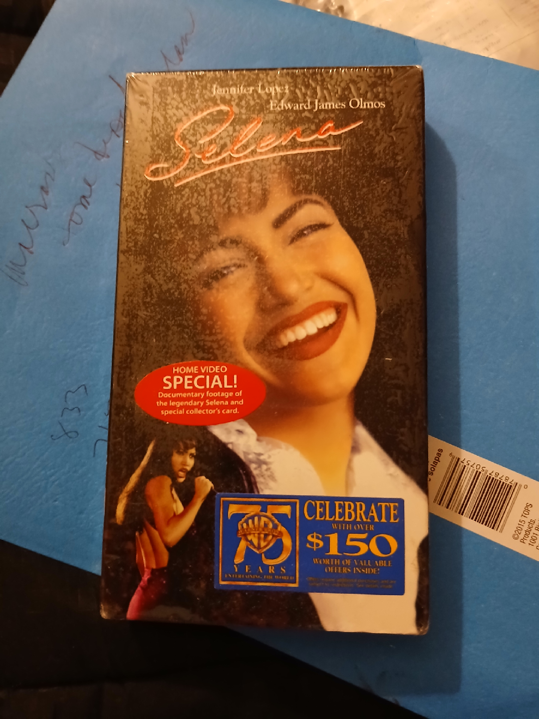 Selling a VHS tape of the movie Selena, starring Jennifer Lopez and Edward James Olmos. 5
