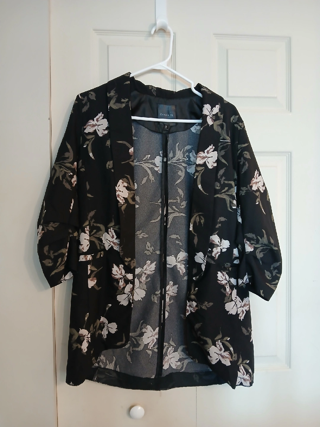 Dynamite floral black open blazer, size small (S)