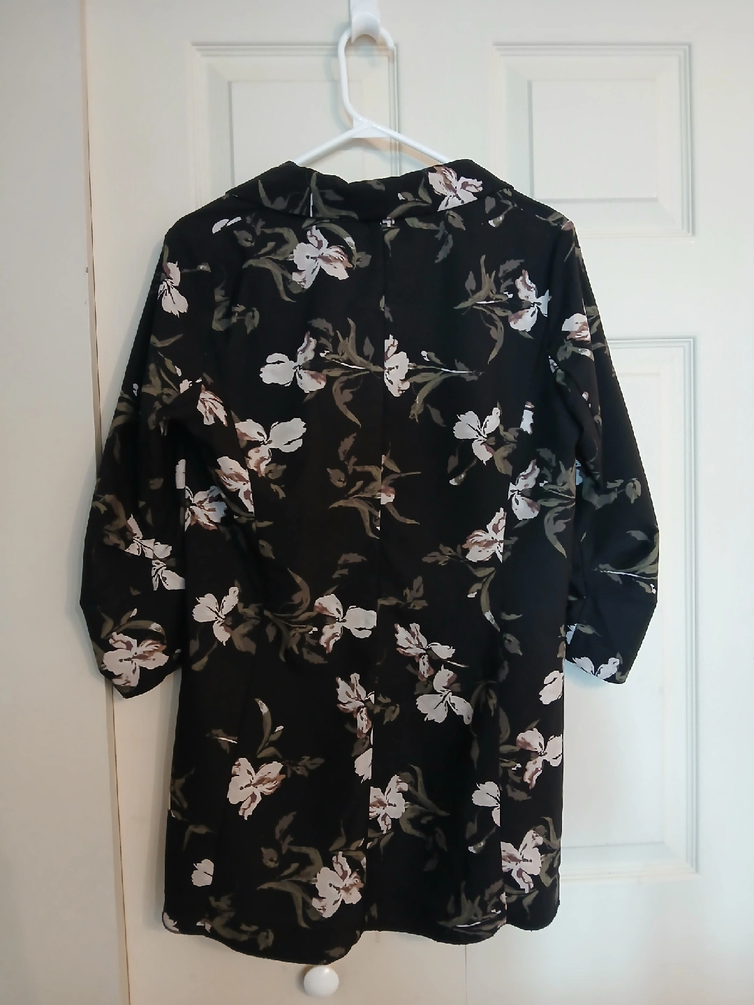 Type: Floral oversized relaxed fit open blazer with real functional front pockets and ruched sleeves. Can be dressed up or down easily -- wear with nice pants for the office to bring some umph to your outfit, or wear with some shorts or jeans for a more causal fit.