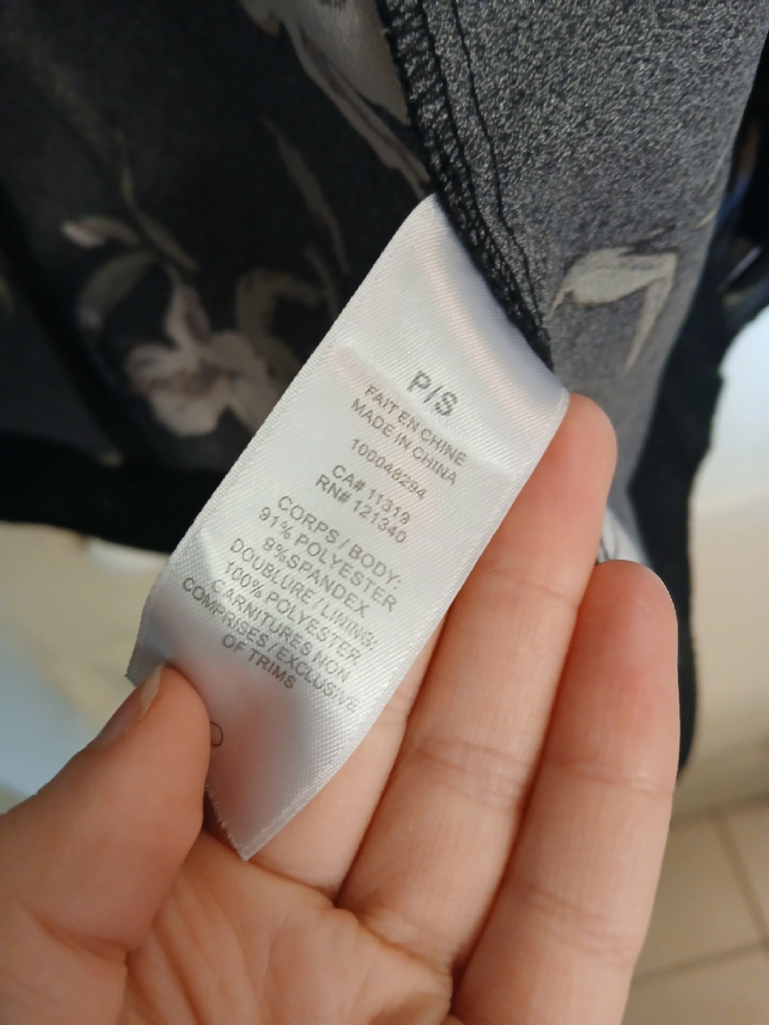 Composition / material: body is 91% polyester and 9% spandex, lining is 100% polyester