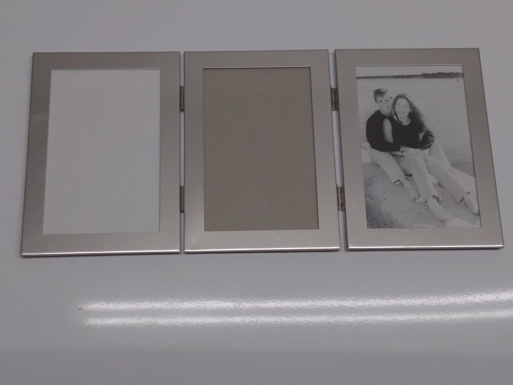 32Here's a silver triple folding picture frame! It's in great shape and ready for your favourite photos