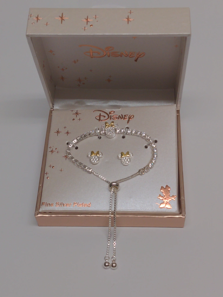 Here's a lovely Disney fine silver plated bracelet and earrings set! It comes in its original box, perfect as a gift for a Disney fan