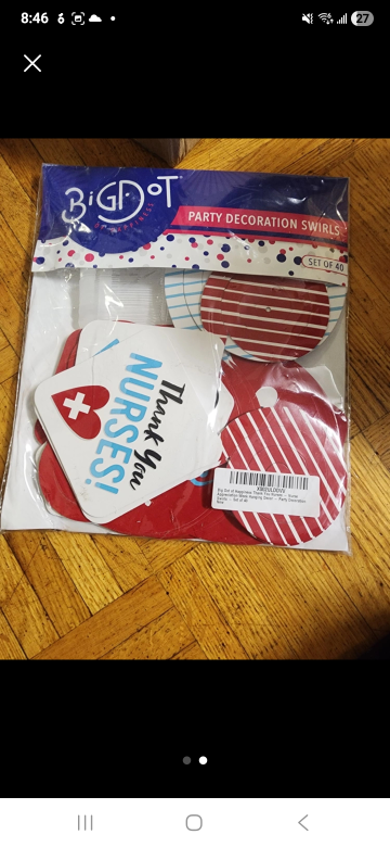 Selling a set of Big Dot of Happiness Thank You Nurses party decoration swirls. This is a Nurse Appreciation Week hanging decor, and the set includes 40 pieces. It's perfect for adding a festive touch to any celebration!