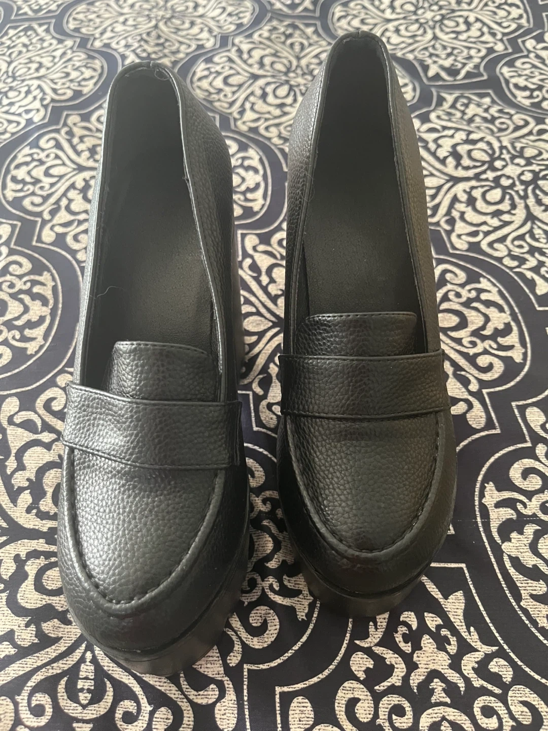 30Chunky black platform loafers in EU size 37! They have a cool, edgy look with a textured finish. Perfect for adding some height and style to any outfit
