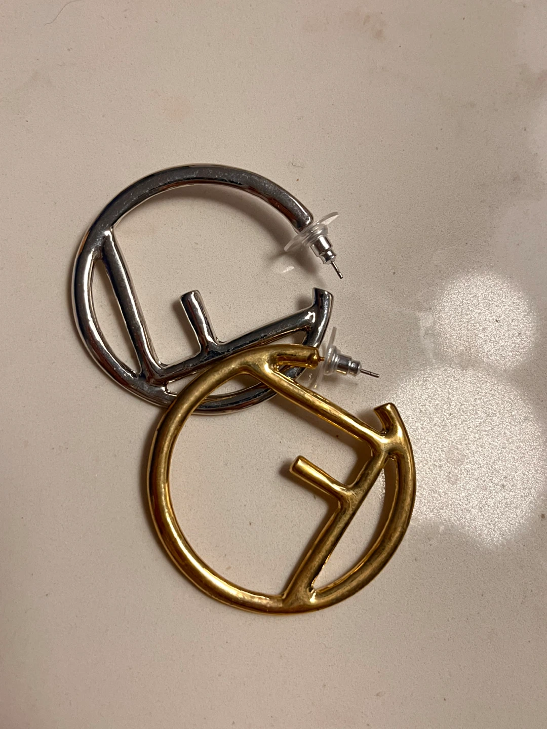 Selling a pair of FF hoop earrings. One is gold tone and the other is silver tone. They are in great condition and a stylish addition to any outfit!