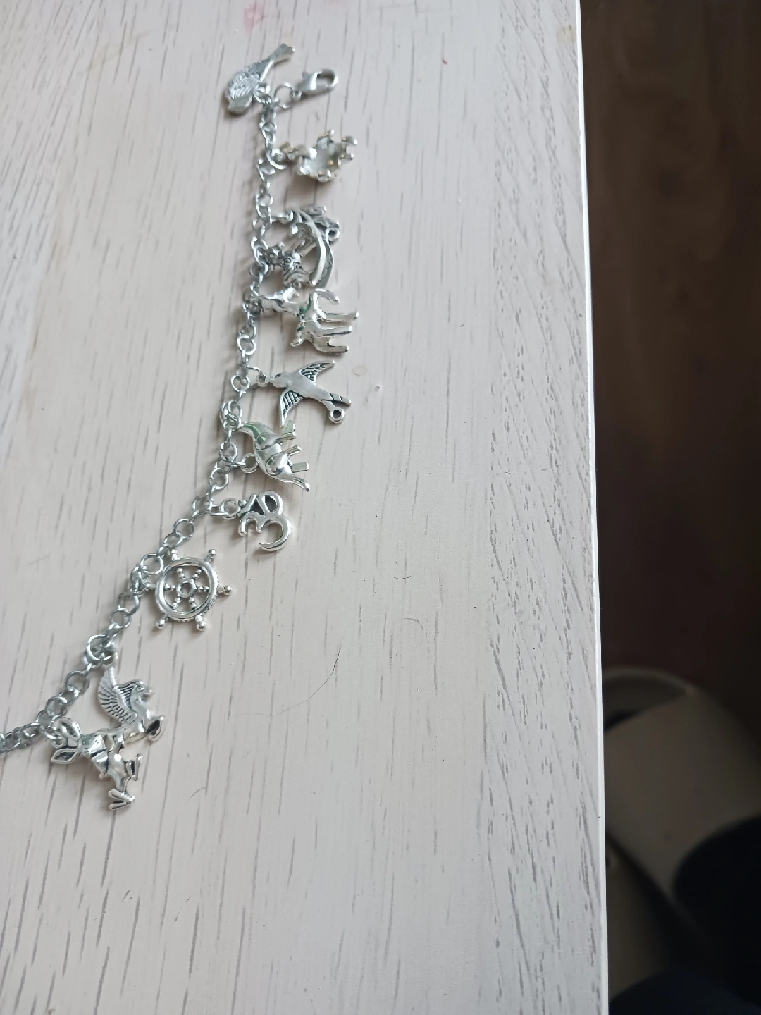 1000+Cute silver charm bracelet featuring various charms like a pegasus, turtle and birds