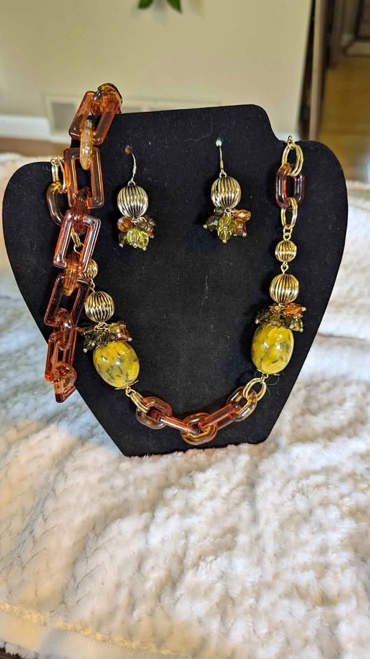 π― Vintage Amber-Tone Lucite Necklace & Earring Set