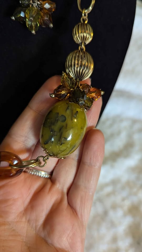 Gorgeous vintage jewelry set featuring warm amber, honey, and gold tones.
