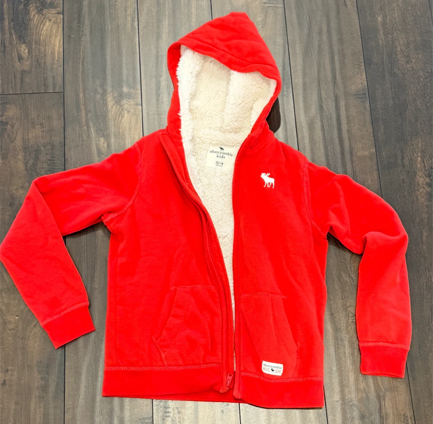 Abercrombie Kids Red Sherpa Lined Hoodie, Size 13/14