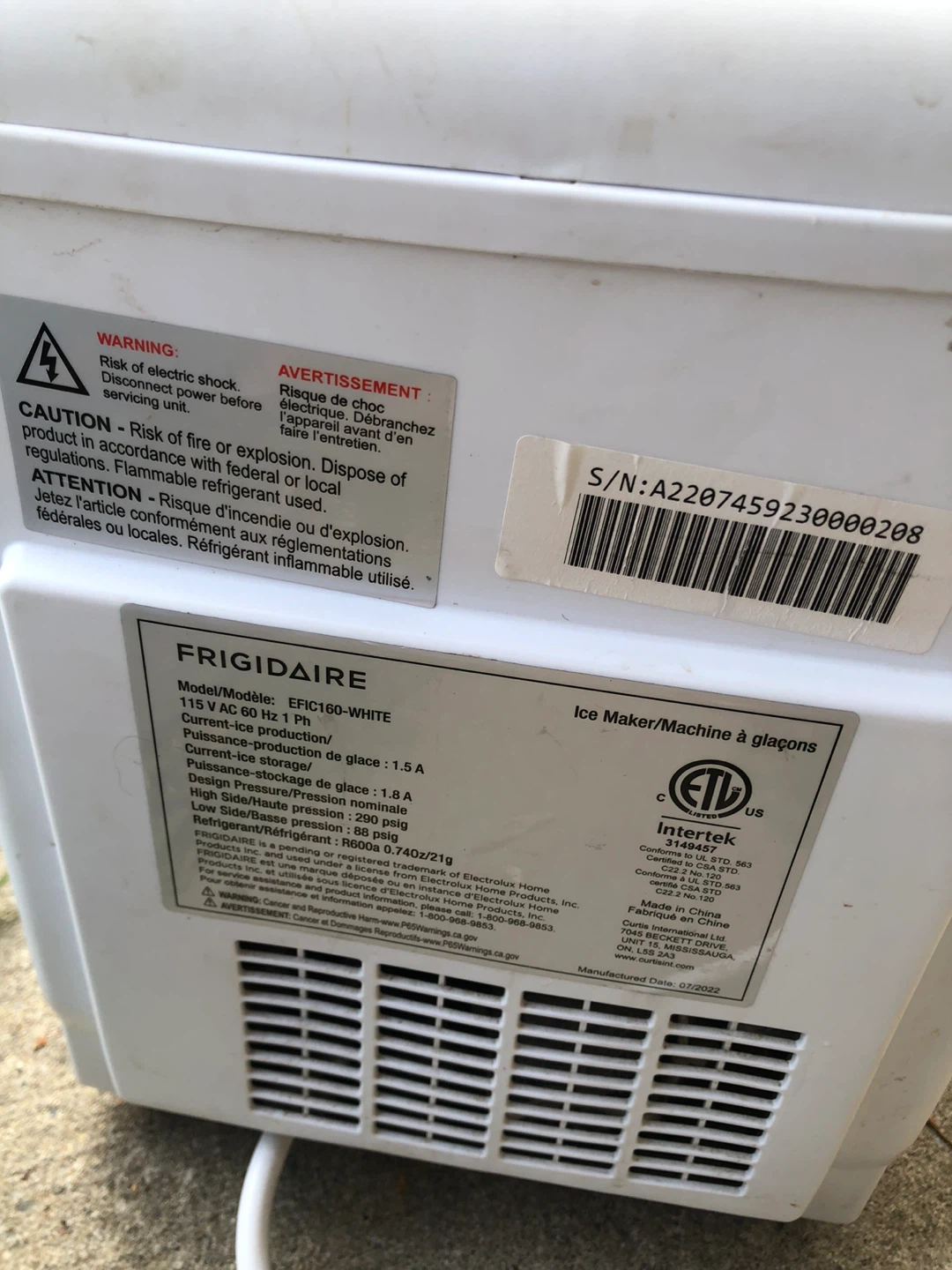 Selling a Frigidaire ice maker. It's in good condition and ready to make ice for your summer drinks! All sales are final. Pick up at Don mills Steele east area.