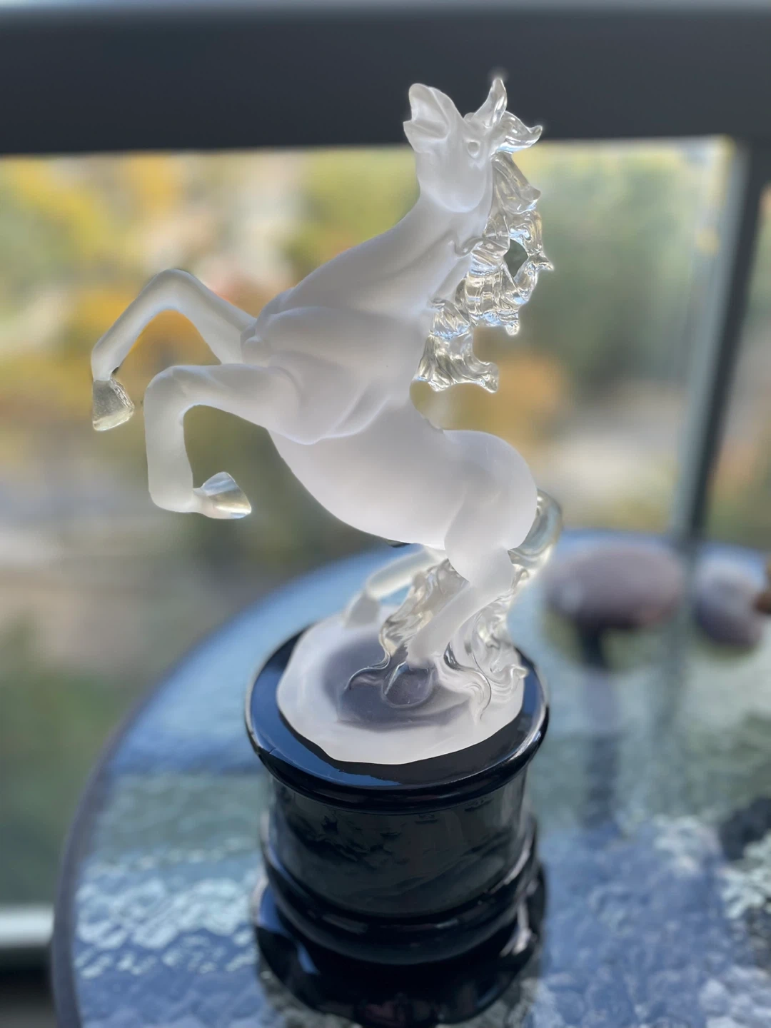 26Beautiful decorative horse figurine featuring a rearing horse on a black base. This piece would make a stunning addition to any collection or a lovely decorative accent for your home.