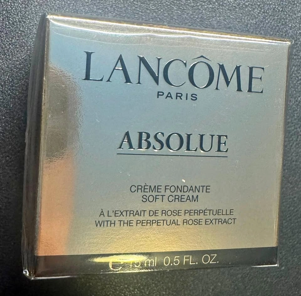 20Indulge in luxury skincare with this brand new, factory-sealed jar of Lancôme Absolue Crème Fondante Soft Cream. This exquisite 15ml (0.5 FL. OZ.) cream is perfect for those seeking to revitalize their complexion or try out a premium product. Formulated with the potent Perpetual Rose Extract, the Absolue Soft Cream is renowned for its transformative properties, helping to reveal visibly smoother, firmer, and more radiant skin. Its delicate texture melts effortlessly upon application, providing a sensation of comfort and nourishment. This is a fantastic opportunity to experience the benefits of Lancôme's high-performance Absolue range at an attractive price. The product is in pristine, unopened condition, ensuring its freshness and efficacy.