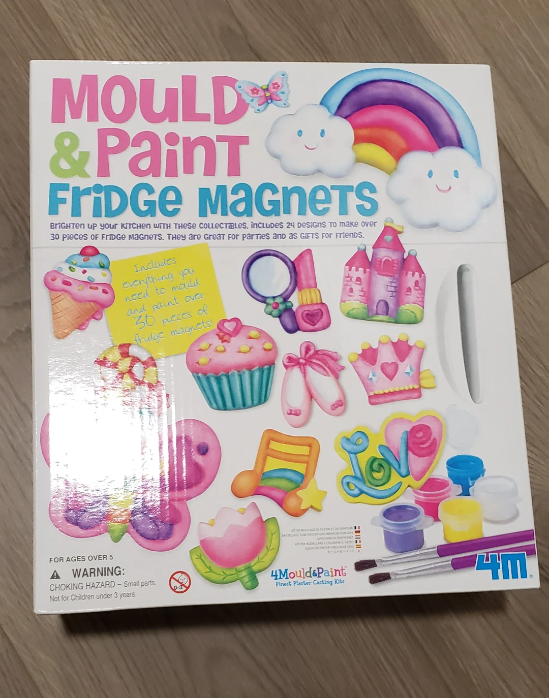 Get creative with this brand new 4M Mould & Paint Fridge Magnets kit! It includes everything you need to mould and paint over 30 pieces of fridge magnets. Perfect for ages 5 and up, this kit is great for parties and as gifts for friends. Brighten up your kitchen with these collectibles!