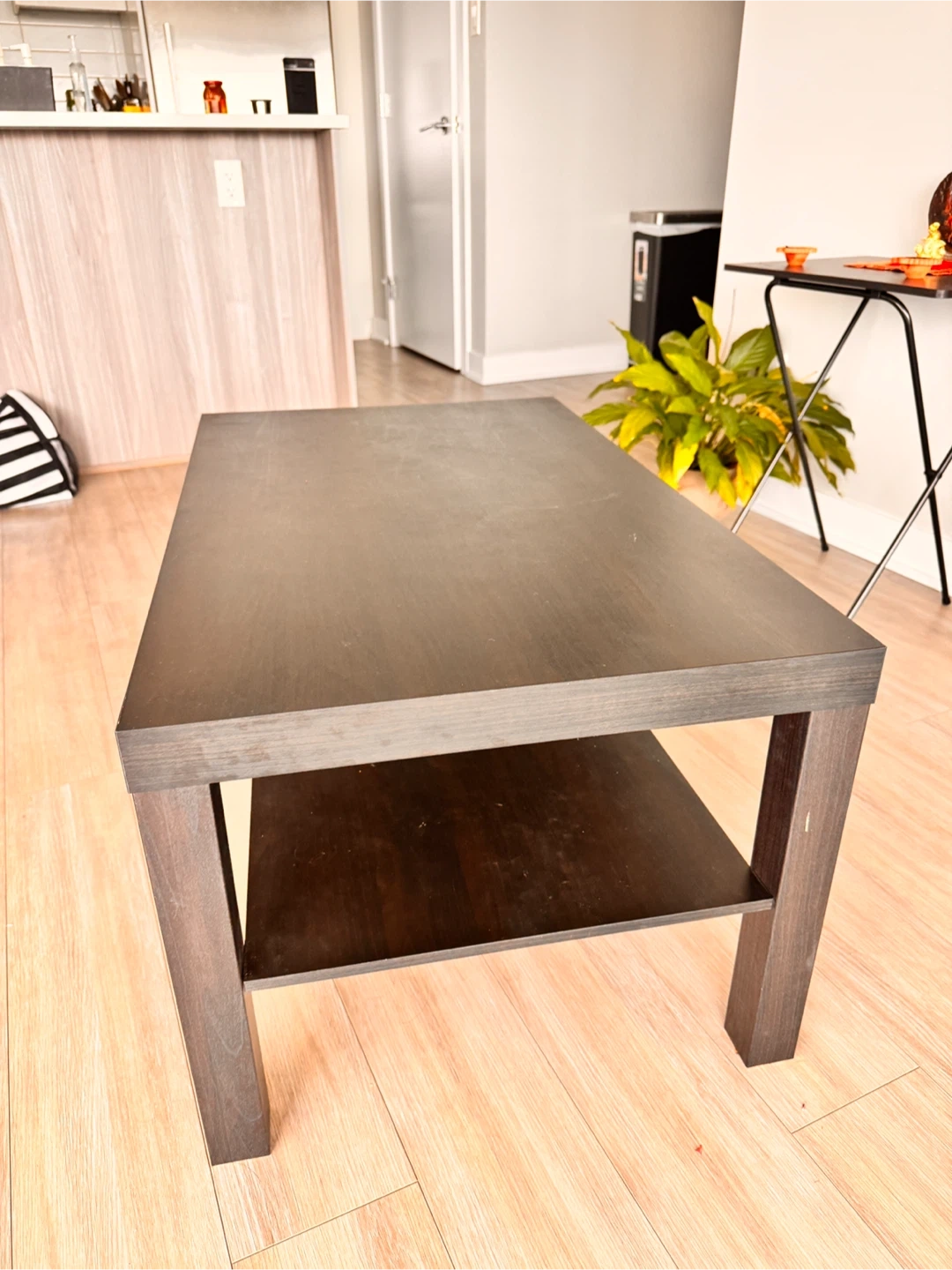 Selling a dark brown IKEA Lack coffee table! It's in great shape , no scratches. Dimensions are approximately 90 cm (35 3/8") in length, 55 cm (21 5/8") in width, and 45 cm (17 3/4") in height. Perfect for any living room!