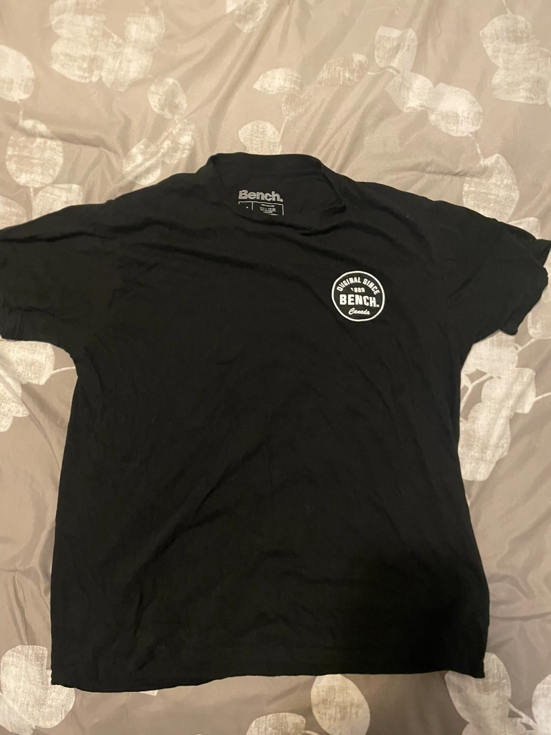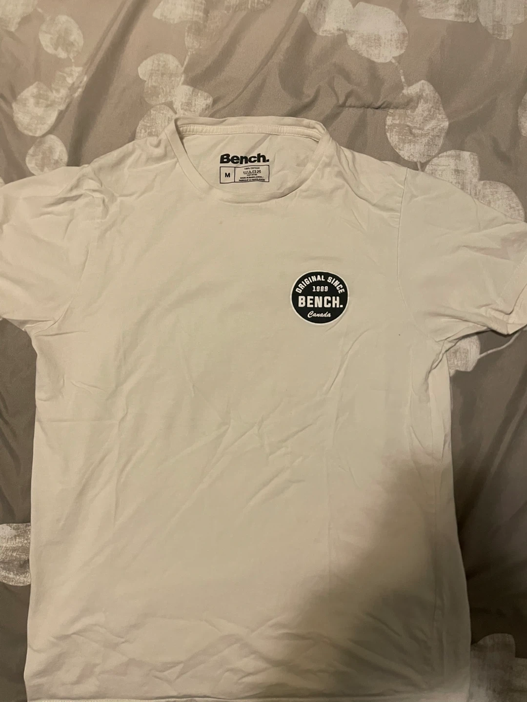 79Here's a Bench. t-shirt in size medium! It's in great condition and ready for a new home. The shirt features the 'Original Since 1989 Bench. Canada' logo. One black and one cream/white color, same design and size, black has been worn multiple times and white one has been worn 1-2 times only for short periods of time but both are in great condition.15 dollars for both or 10 dollars each.