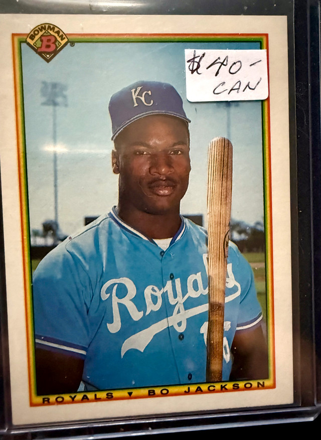 Own a piece of baseball history with this 1990 Bowman Bo Jackson baseball card! This card captures Bo in his Royals uniform, ready to knock one out of the park. The card is in good condition, considering its age. A must-have for any serious collector or Bo Jackson fan. If you're looking to add a unique card to your collection, this Bo Jackson is a solid pick. Just a heads-up, if this ad is still kicking around, the card is up for grabs!
