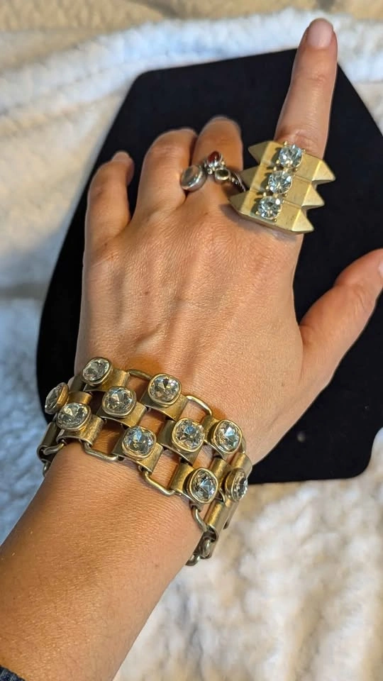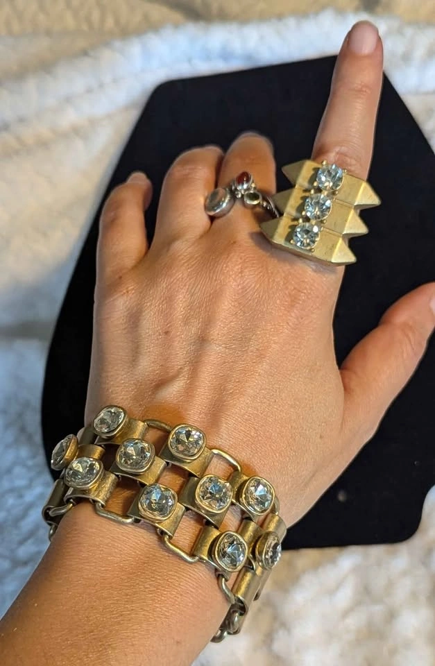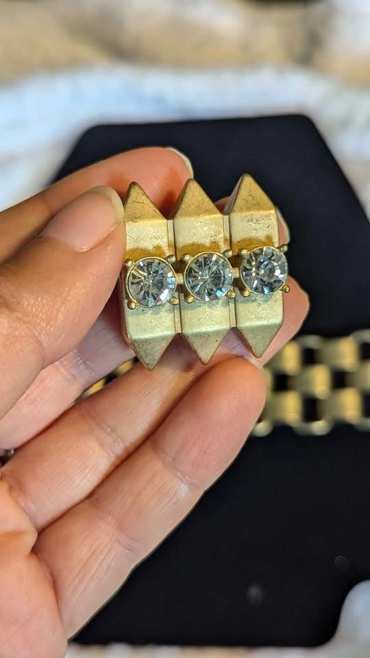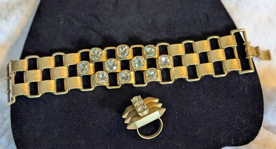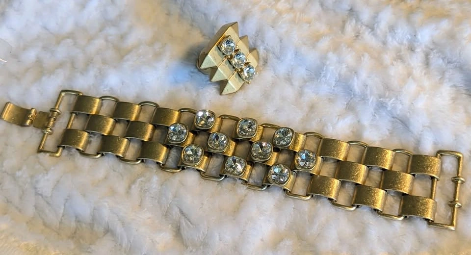 β¨ Vintage Gold-Tone Rhinestone Bracelet & Ring Set