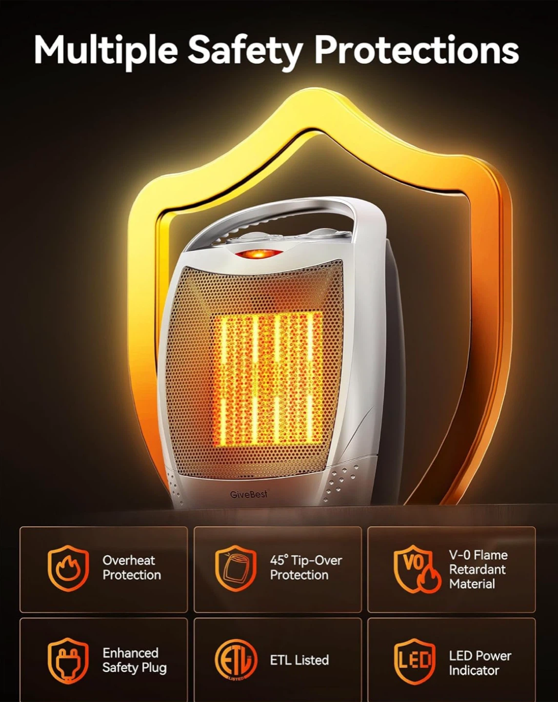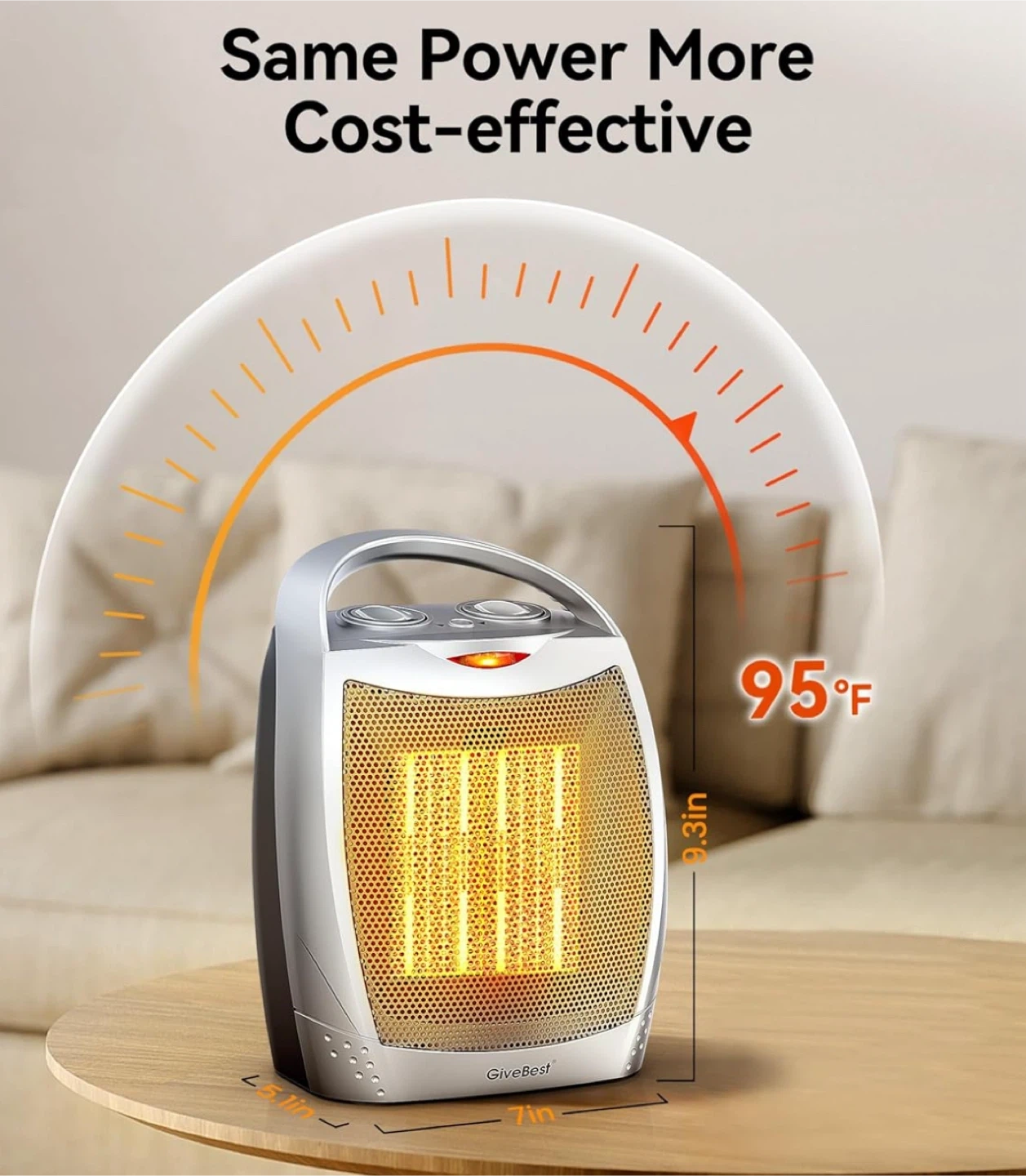 Keep cozy with this GiveBest portable space heater! It's designed to bring warmth all around, heating up to 200 sq ft. It's durable, reliable, and easy to move thanks to its portable handle. Perfect for adding a little extra warmth wherever you need it