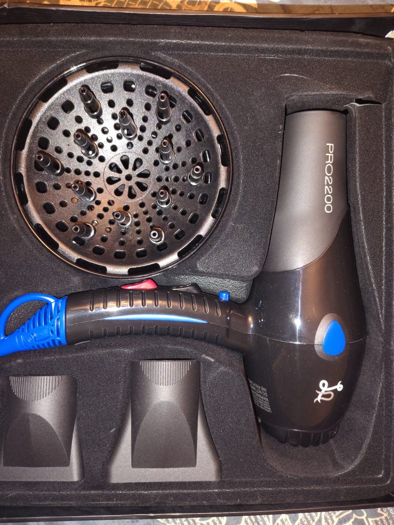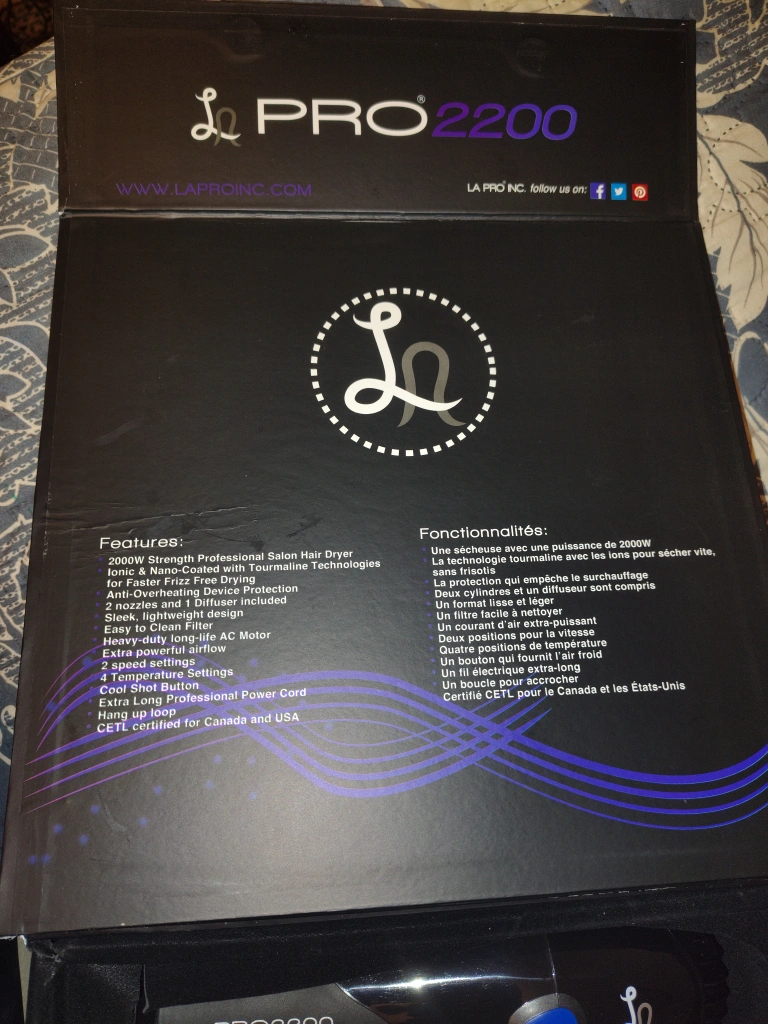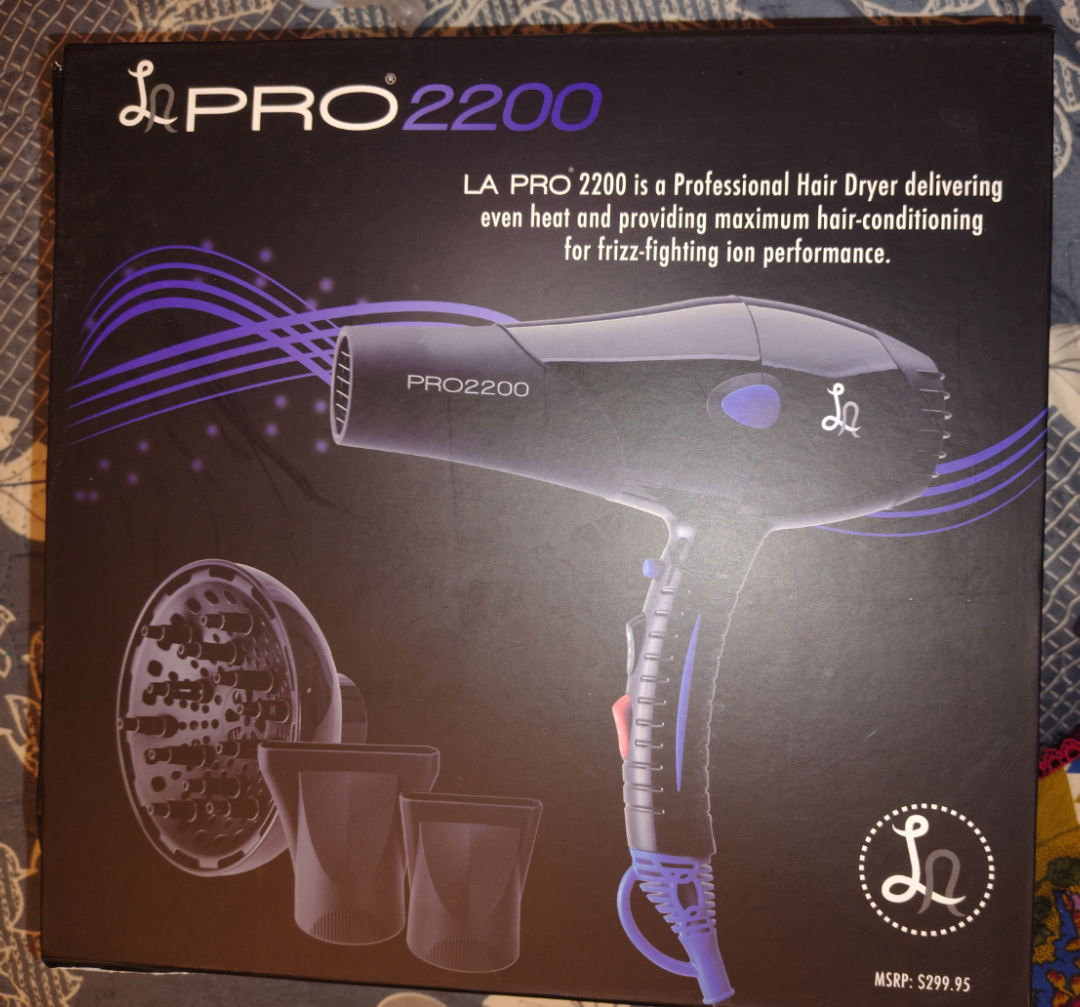Selling a LA Pro 2200 professional hair dryer. It delivers even heat and provides maximum hair-conditioning for frizz-fighting ion performance. The box indicates an MSRP of $299.95