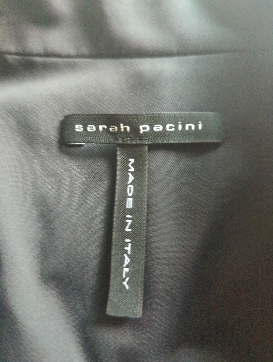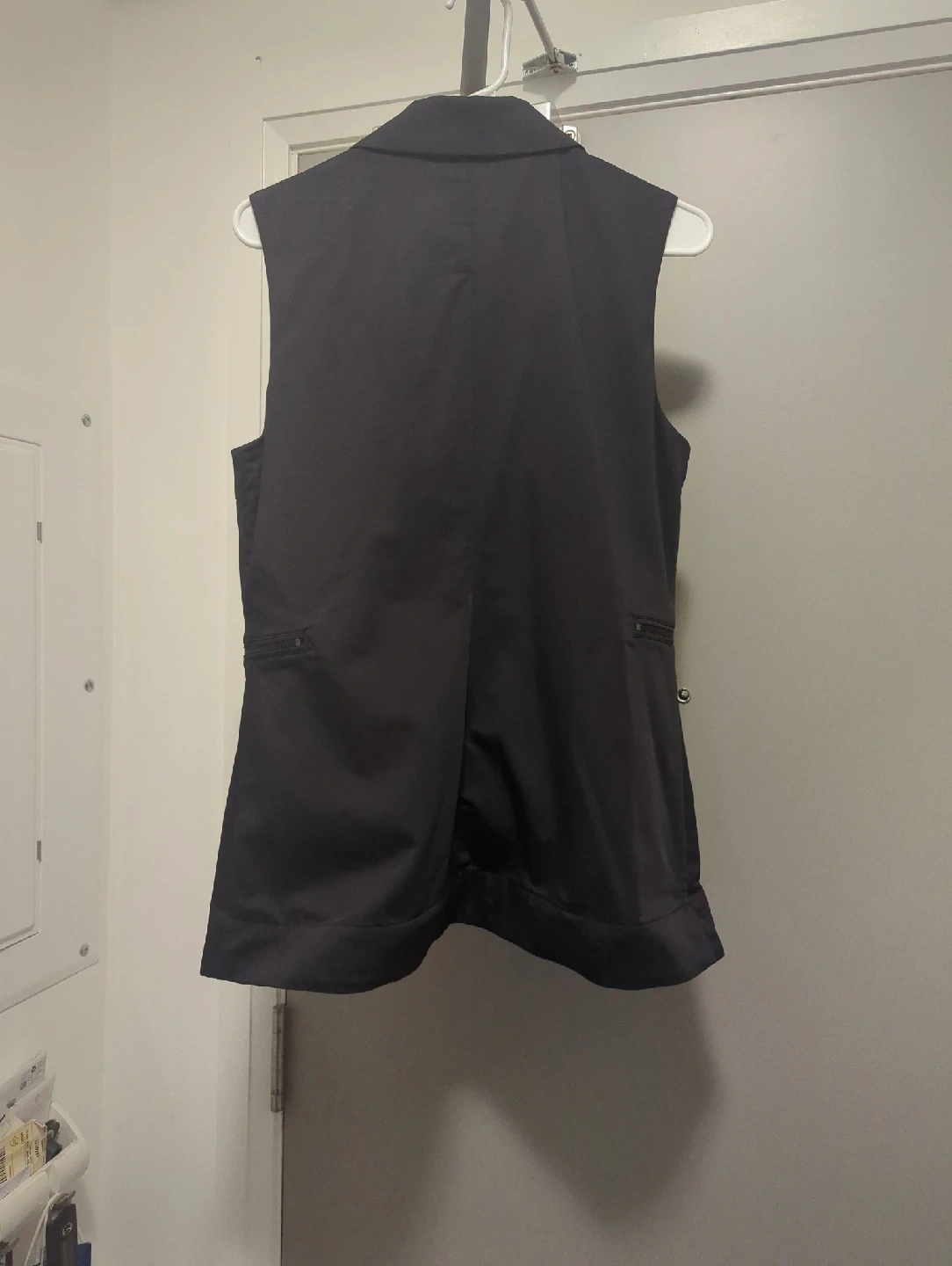 Here's a stylish Sarah Pacini black vest, perfect for adding a unique touch to your outfit! It features a sleek design with zipper details and a button-up front. The vest is size 2 which corresponds to US size 6-8 or medium and is made in Italy, ensuring high-quality craftsmanship. No real pockets. Very unique style.