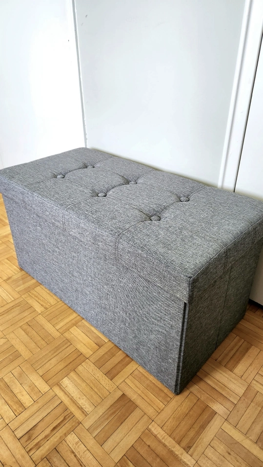 I had these extras that have never been used. One is gray, moss green, beige, or black. Choose your color, if it's still available. It is foldable and spacious for toys, pillows, blankets, etc. It looks nice and has plenty of storage space, or foot rest. See dimensions in last pic. Original price is $145 inc. tax, so please don't ask for a lower price.