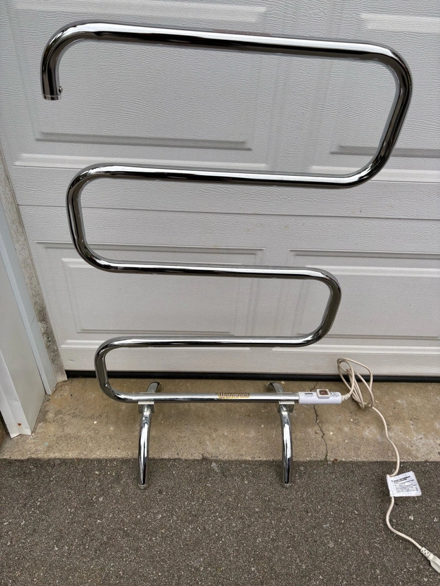 Warm up your towels with this Warmrails towel warmer! This elegant chrome towel warmer is perfect for adding a touch of luxury to your bathroom. It's in good used condition, ready to provide cozy warmth. * Brand: Warmrails * Finish: Chrome * Type: Freestanding Imagine stepping out of the shower and wrapping yourself in a perfectly heated towel – a small indulgence that makes a big difference! Don't miss out on this opportunity to enhance your bathroom experience. If the ad is up, it's available!