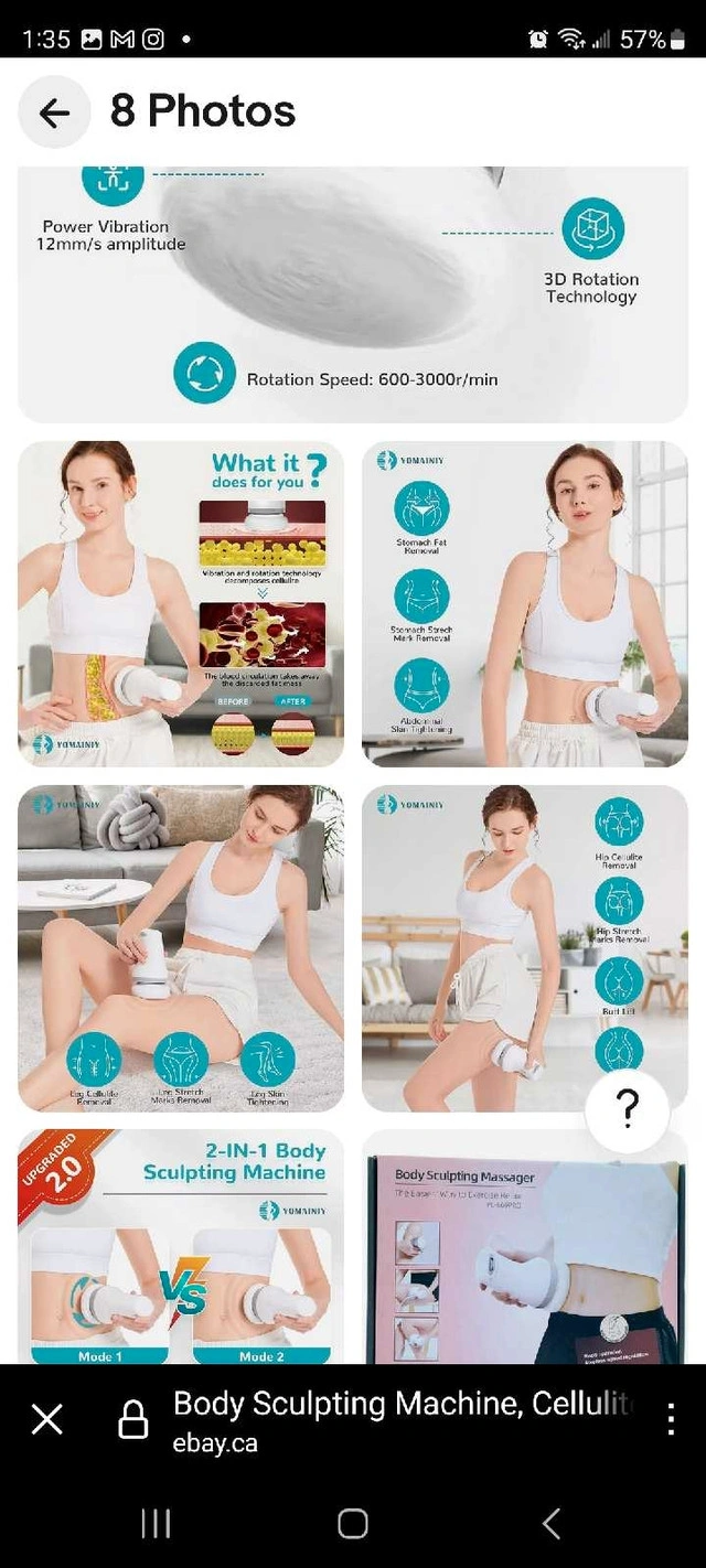 102Body Sculpting Machine, Cellulite Massager Electric with 6 Washable Pads, Body Massager for Belly/Leg/Arms. The body sculpting machine adopts the principle of vibration and rotation technology, providing a way to massage your body. Easy to operate with five different vibration speeds, adjustable to meet your needs for different body parts. You can massage your body anytime and anywhere. Use 15 mins/target areas. Use body oil or cream with the machine! Suitable for most parts of the body such as arms, legs, abdomen, and waist. Pickup in Brampton near Sheridan College Davis campus. For Sale By: Owner