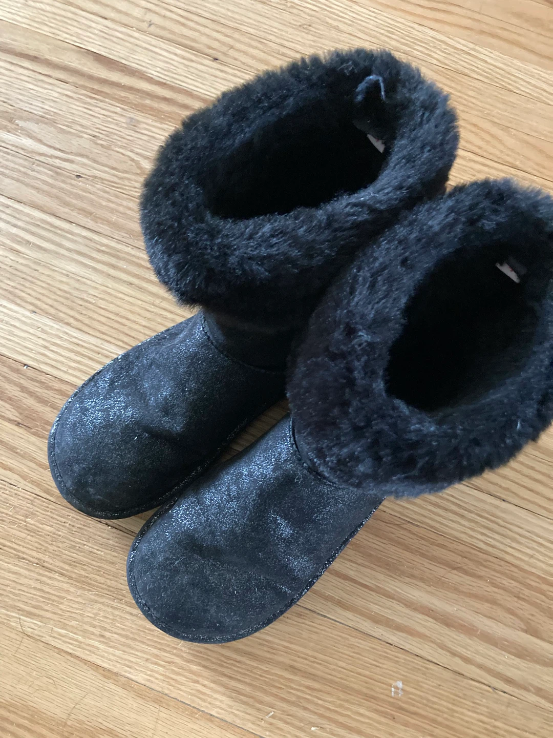 The sparkly shine and rolled tops bring a little more character to your typical Ugg style boot. These even worked with dresses when being warm and cozy was top priority.