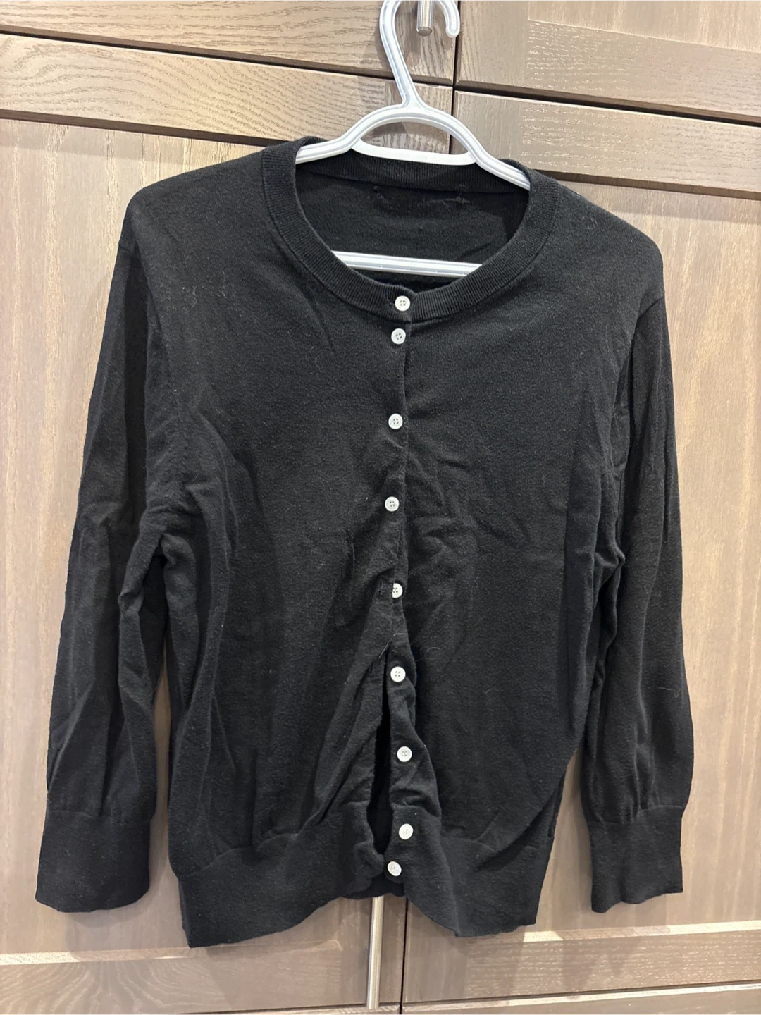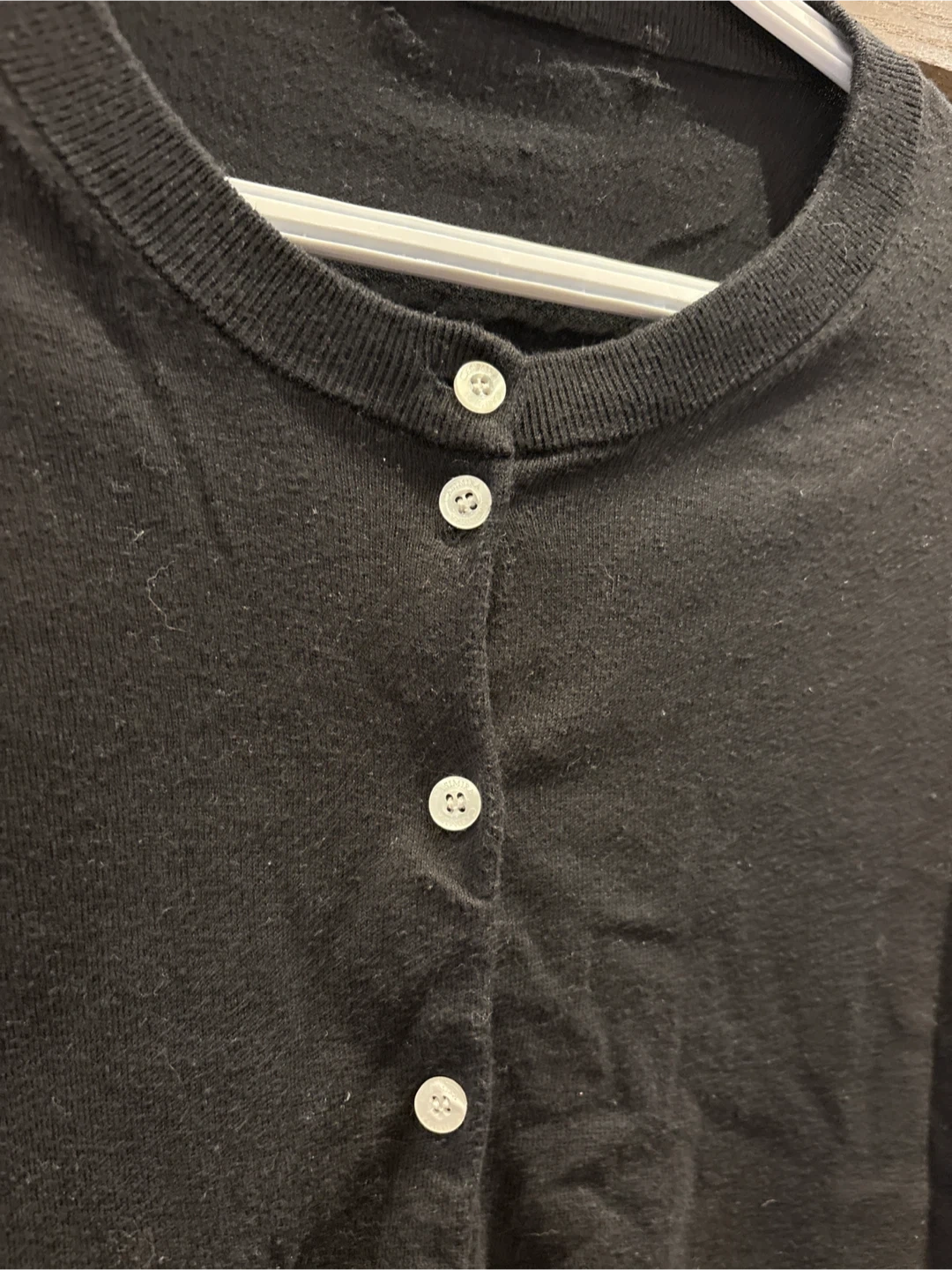 20A classic black cardigan, perfect for layering! It's a size small and in good condition, ready to add a touch of warmth and style to your wardrobe