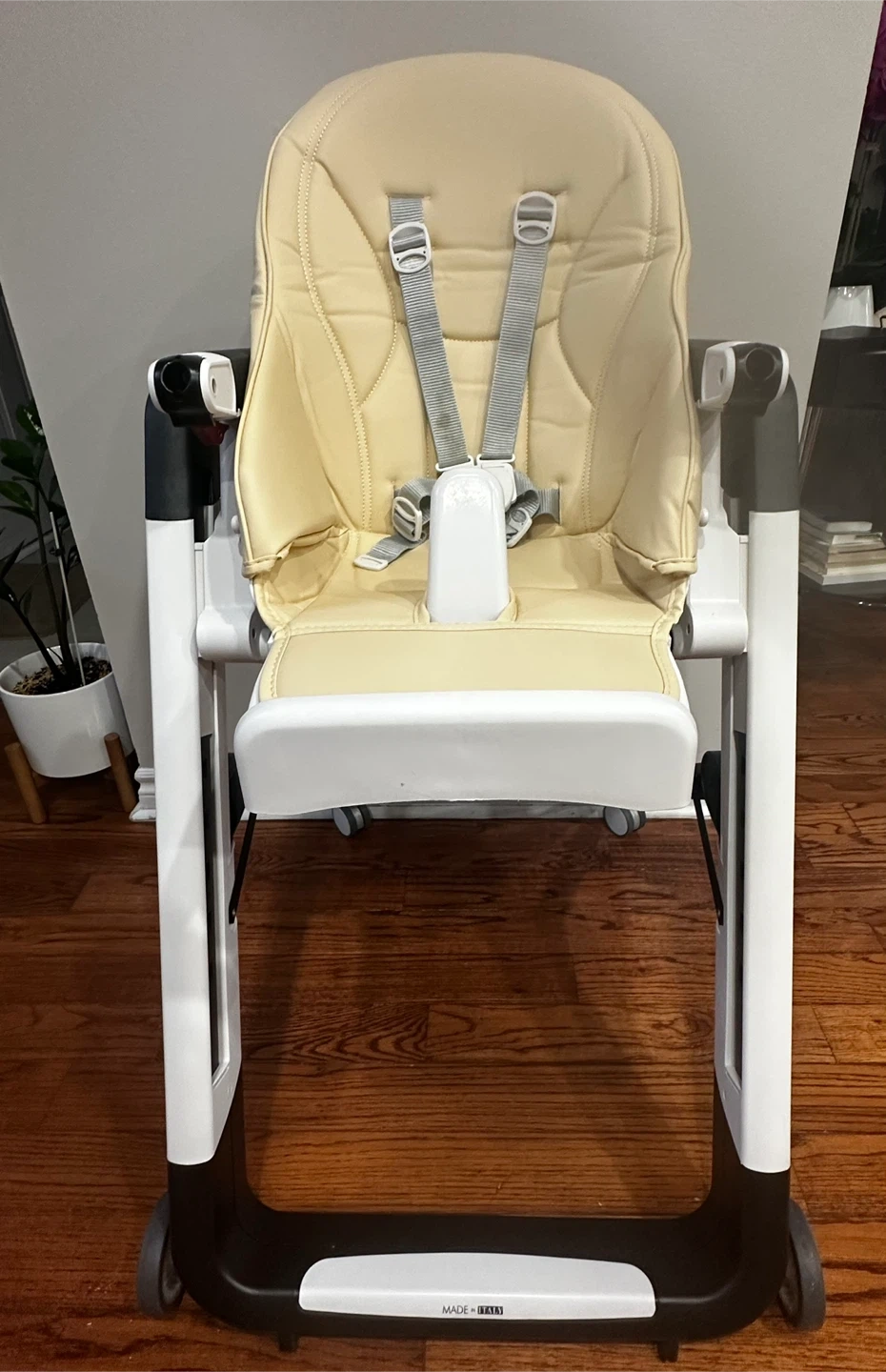 26Selling a Peg Perego Siesta high chair in the Noce (Beige) colour! This high chair grows with your baby and can be folded for easy storage. It features a reclining seat, adjustable height, and easy push wheels perfect for babies and toddlers. Made in Italy. Originally bought @ $428 including tax.