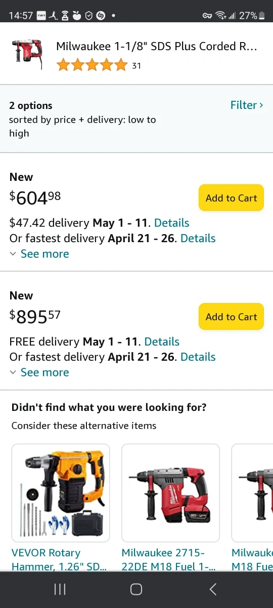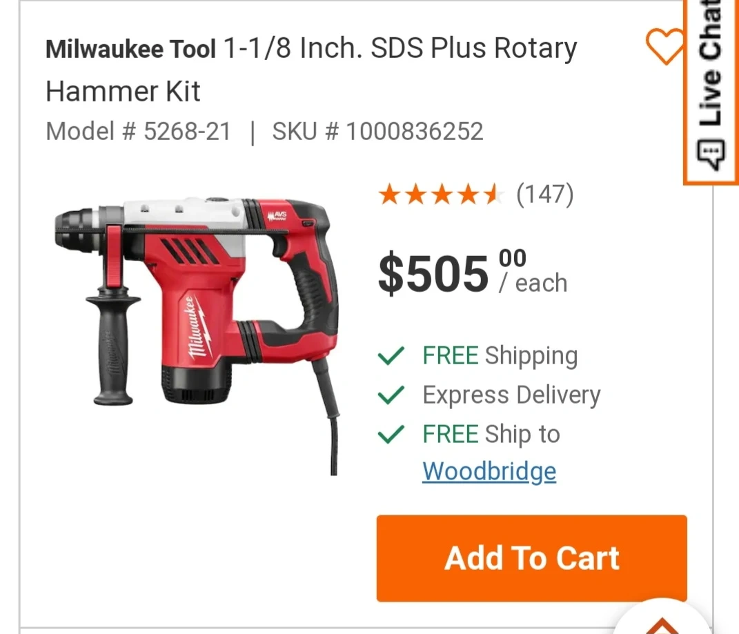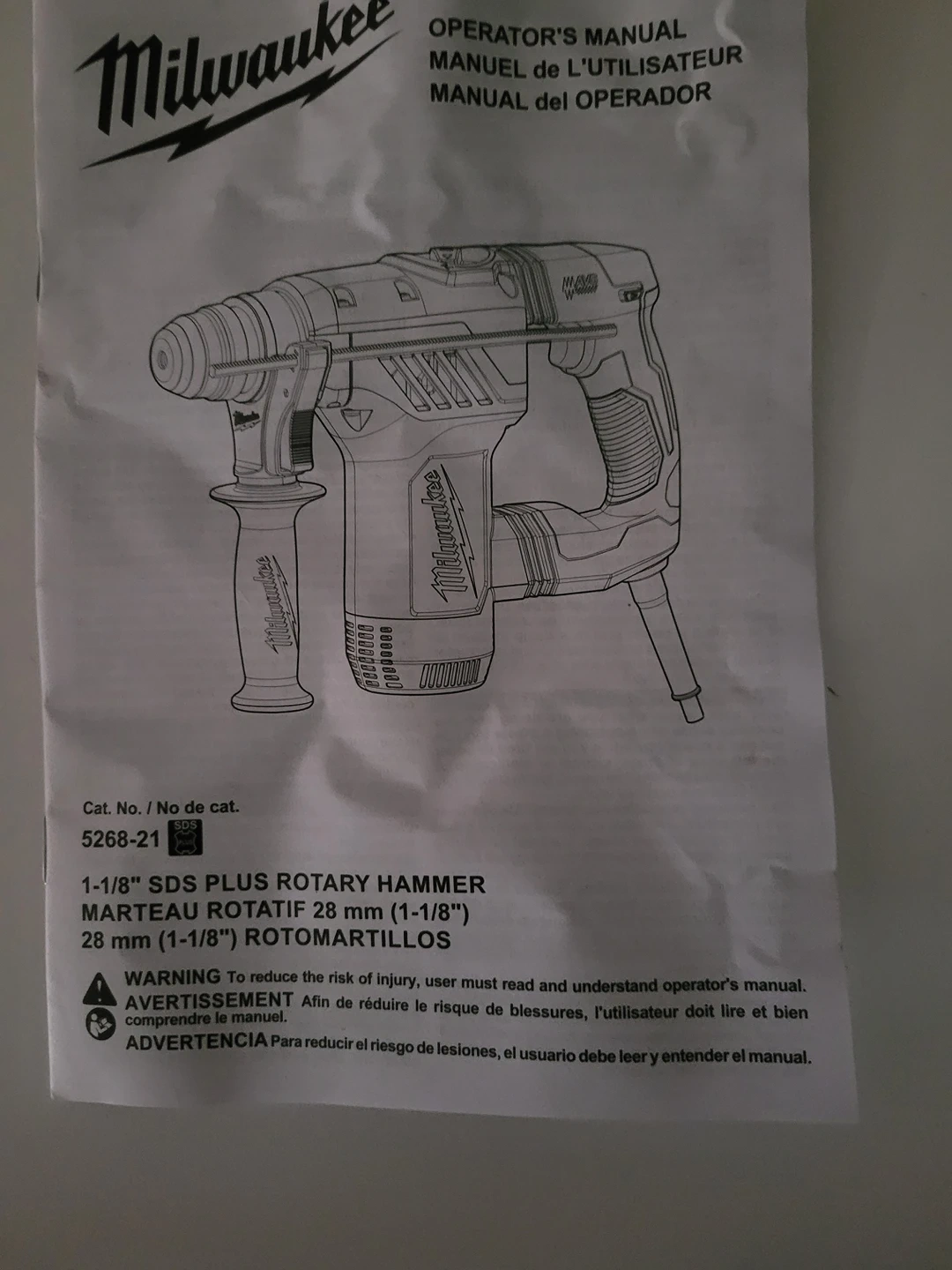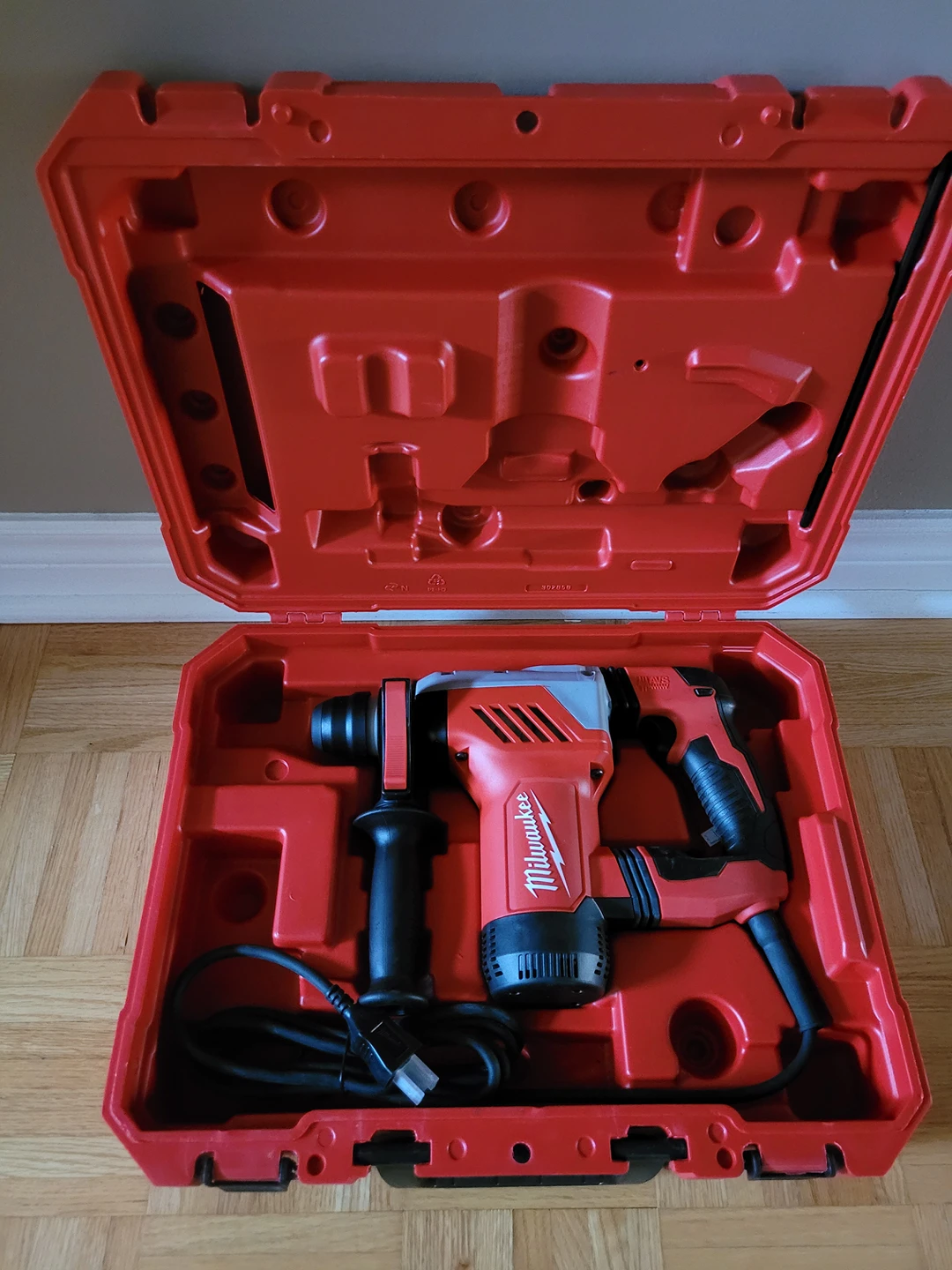Milwaukee 1-1/8 sds plus rotary hammer kit 5268-21. Corded never used, brand new storage box and manual included. Serious inquiries only and please no low ballers, thank you. Saw this same hammer kit on Amazon for $605 + $48 shipping and also another listing on Amazon for over $896 with free shipping and Home Depot has it for $505. Message me if you require more info.