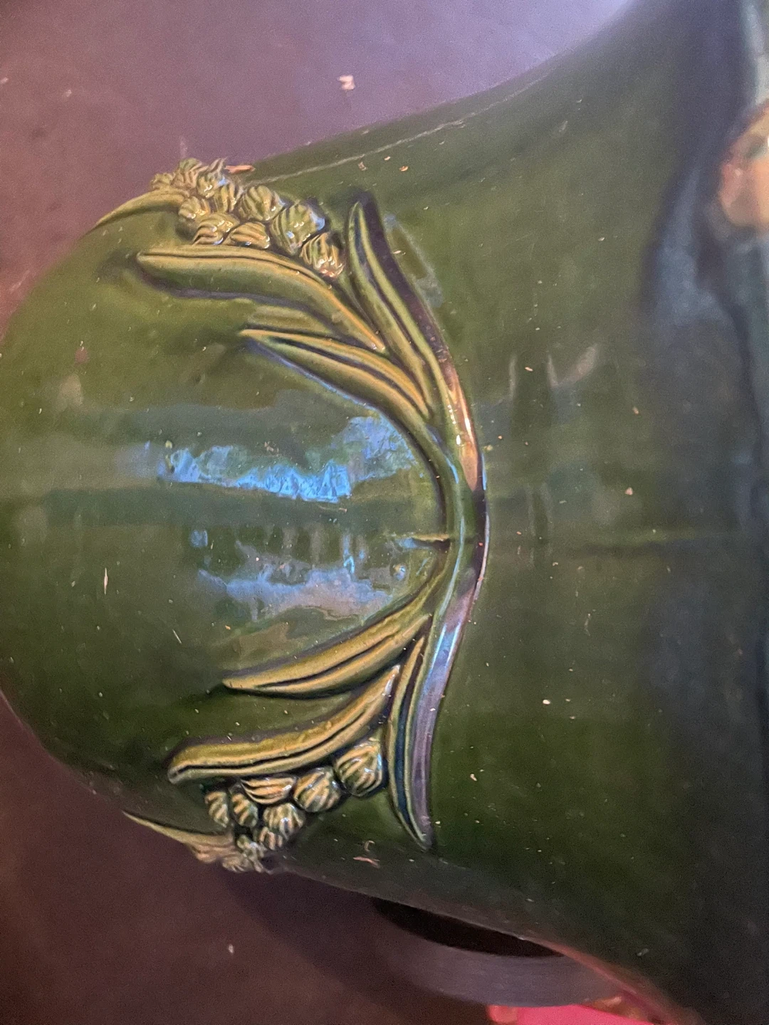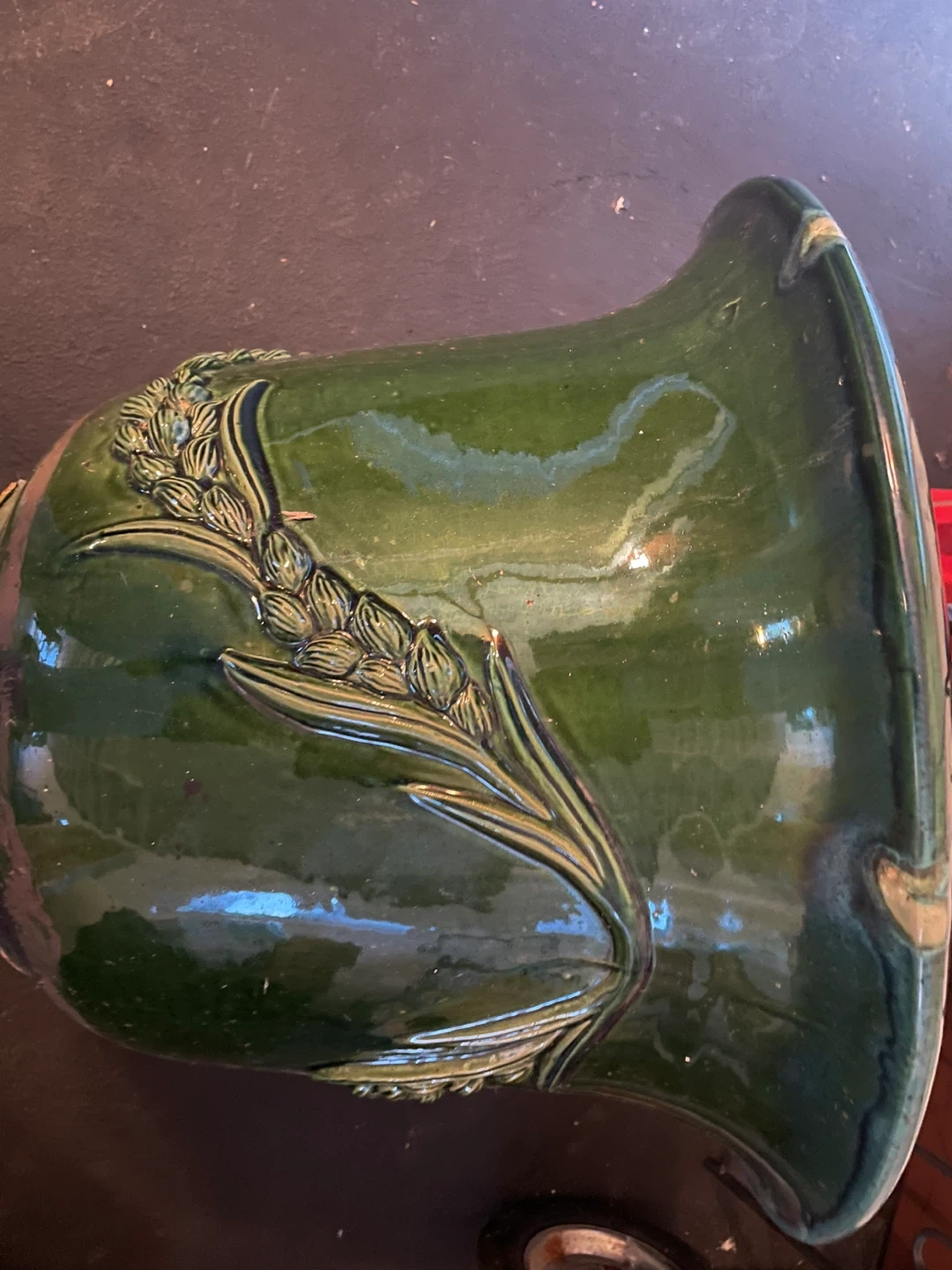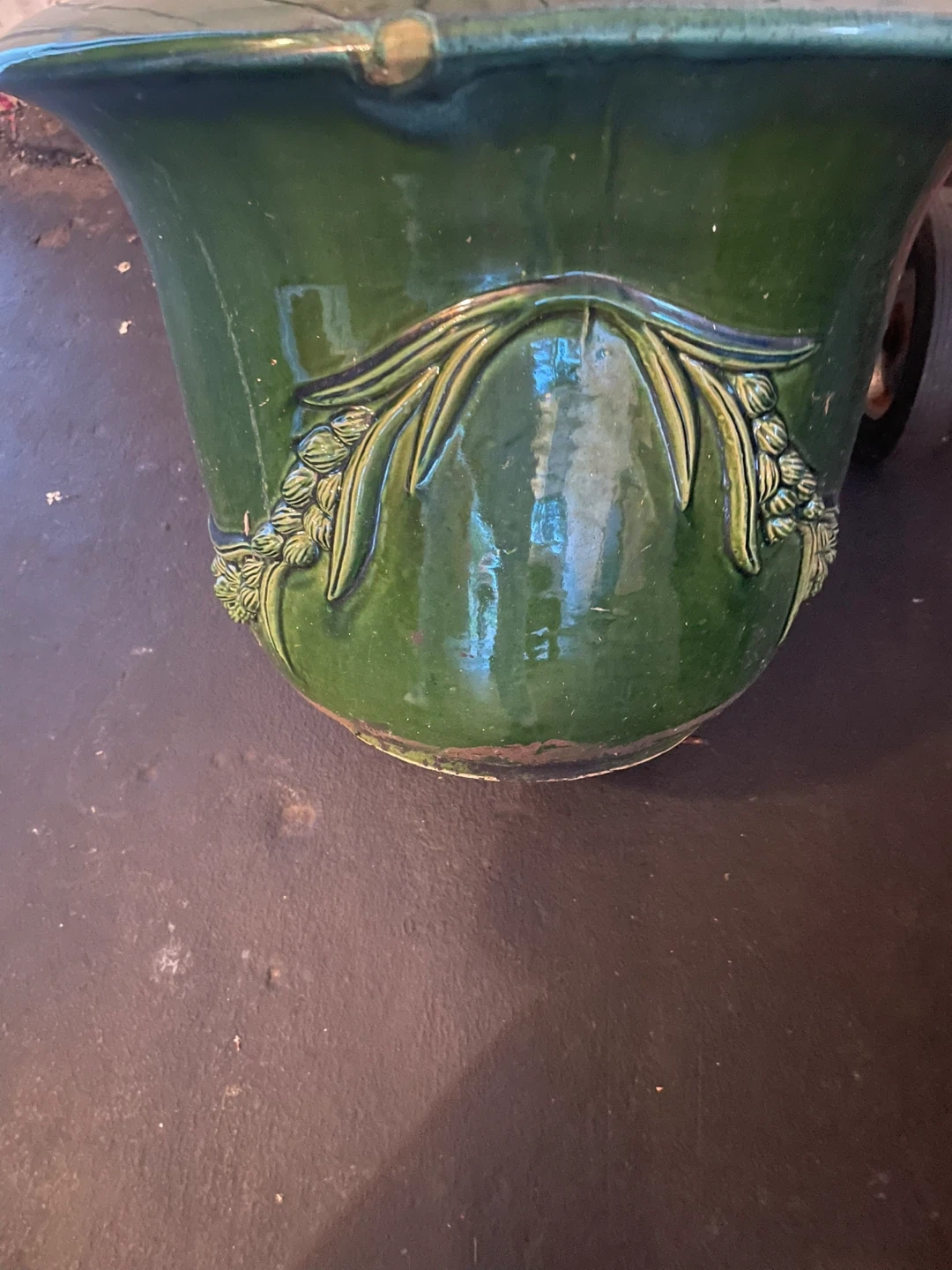 73VINTAGE HEAVY CERAMIC PLANTER. GREEN . ORIGINAL PATINA. The spot on the rim is there since it was made. It’s not damaged . IT IS A HEAVY PIECE. SACRIFICE PRICE AS I AM MOVING AND CANNOT TAKE IT. Size: 21”W X 17” H GREAT FOR INDOOR OR OUTDOOR. Pick up in Scarborough. Midland and Eglinton