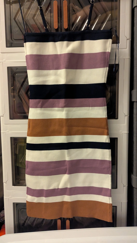 Selling a brand new with tags (NWT) multicolor stripe knit dress! It's a size small and features a stylish striped pattern. This dress is perfect for a casual or dressed-up look