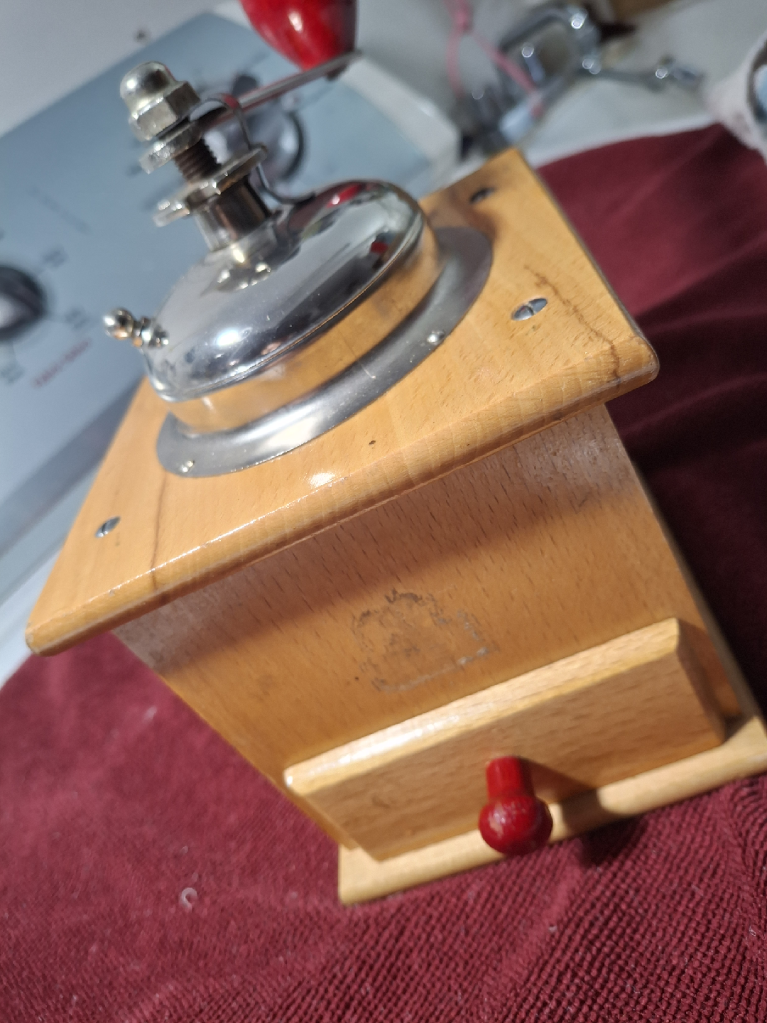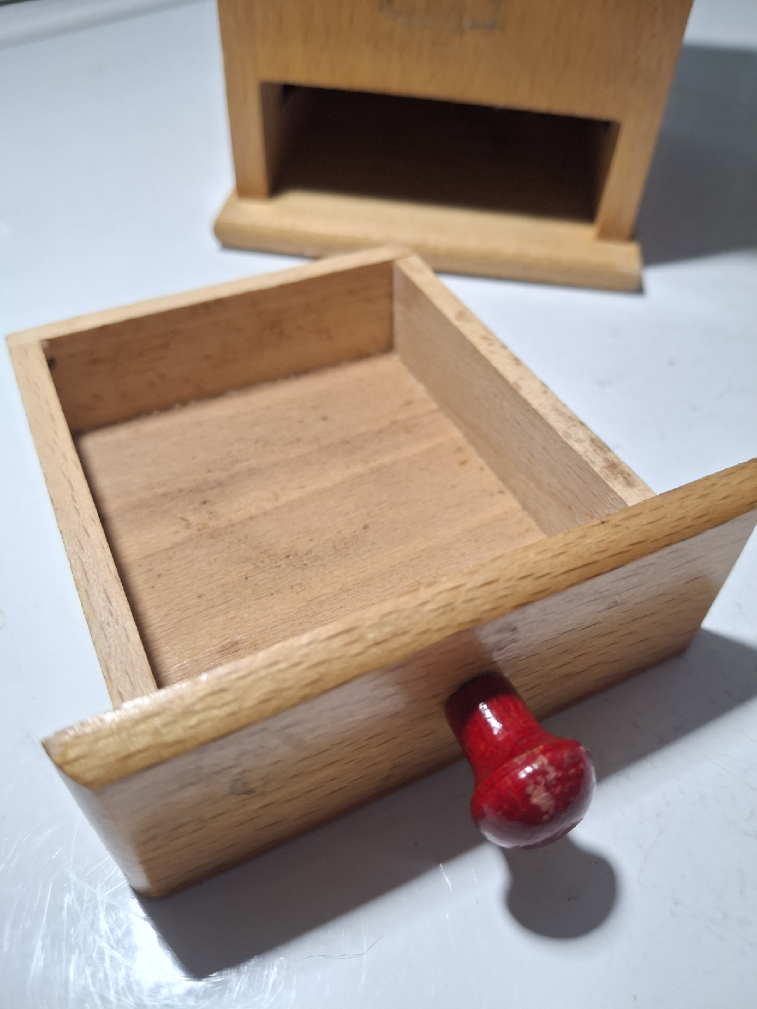 Selling a vintage hand crank wooden mill box coffee grinder.