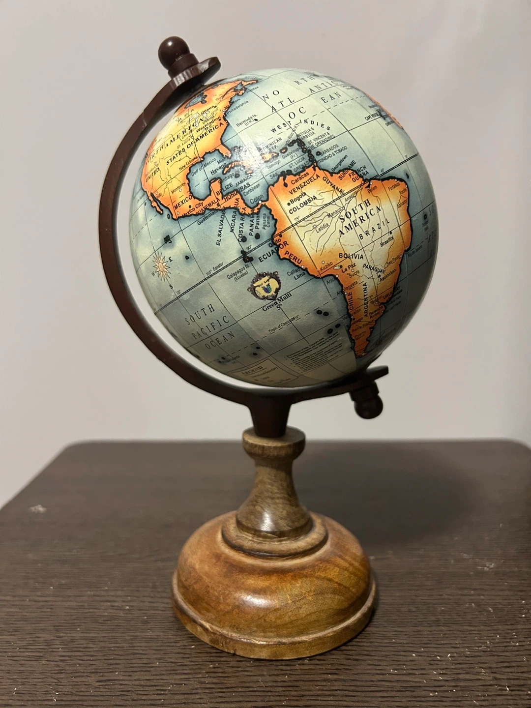 Selling a decorative globe. It's in great shape and would look lovely on a desk or bookshelf! There’s a small fold in the legend (see photo 3). About 20cm tall.