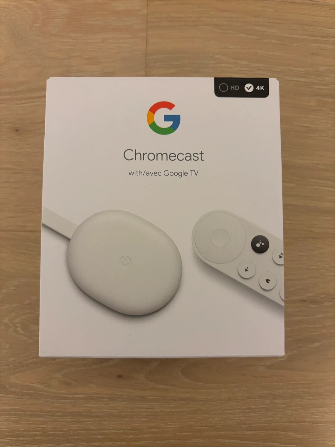 Selling a Google Chromecast with Google TV in white! It comes with the original box, charger, and all components. It's in great condition and ready to stream your favourite shows and movies. Enjoy seamless streaming with this handy device