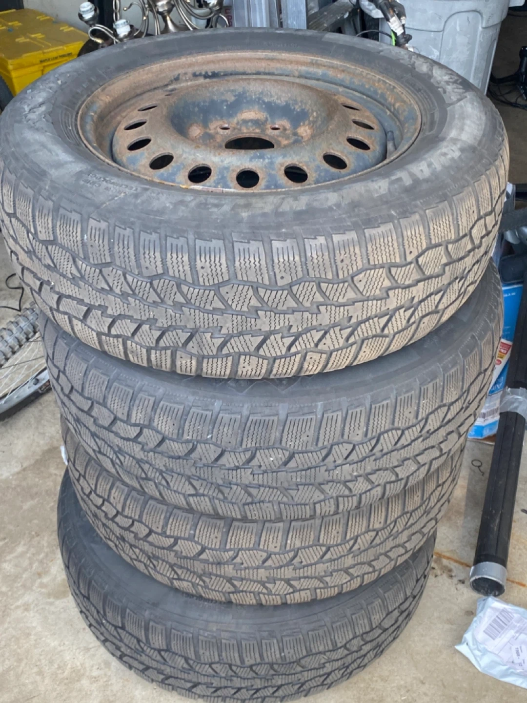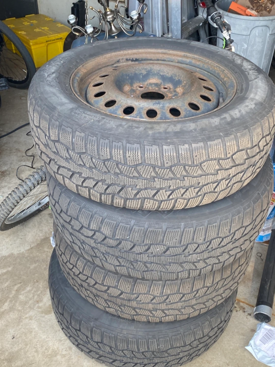 41Selling a set of four Hercules winter tires mounted on steel rims. They show some signs of wear and rust, but are still functional for winter driving. Please inspect the photos for condition details! 225/65/r17