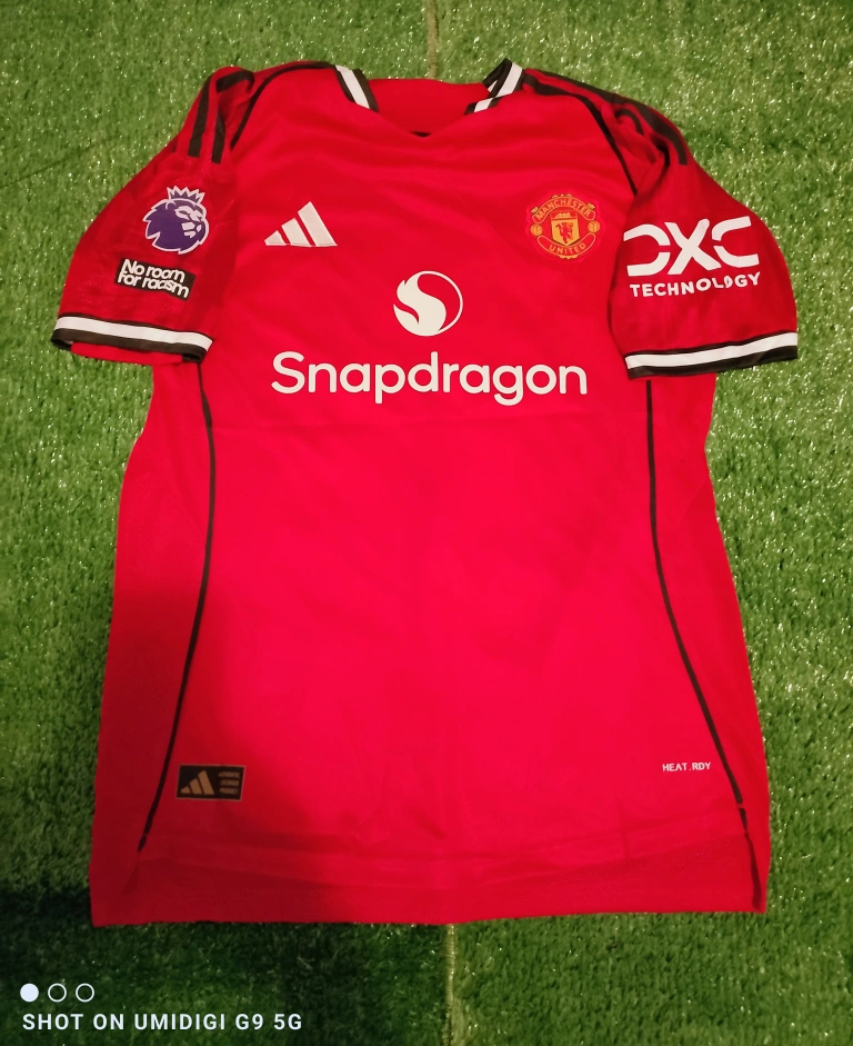 Selling an Adidas Manchester United jersey featuring Fernandes #8! It's red. The jersey also has the "No room for racism" premier league patch.