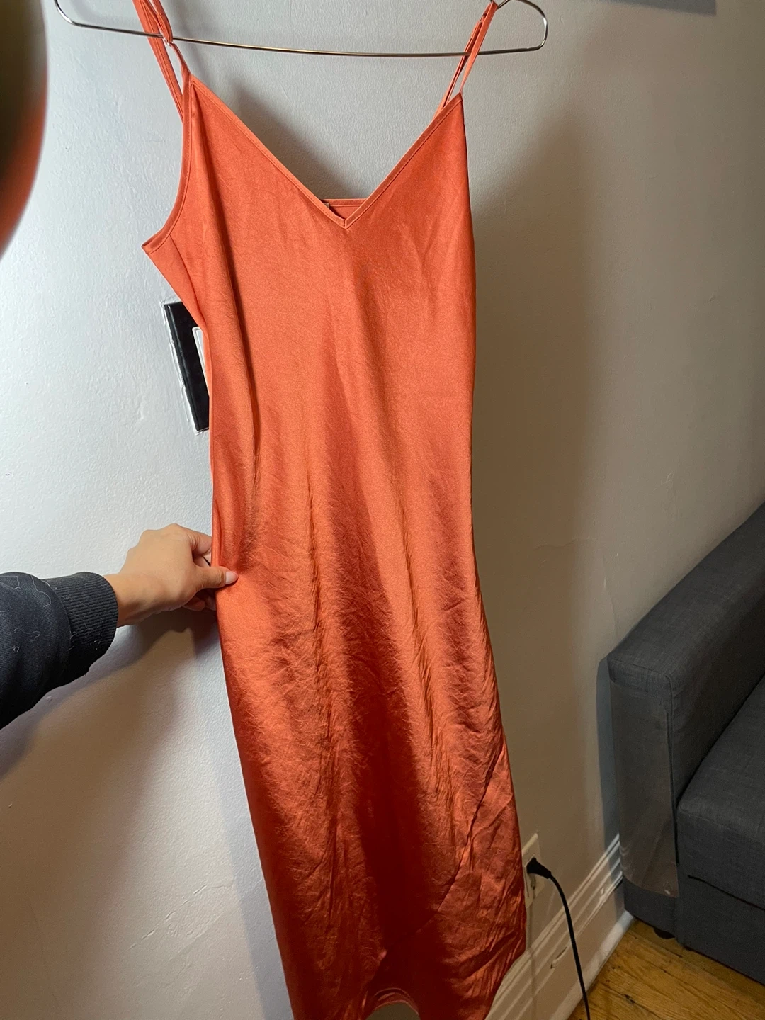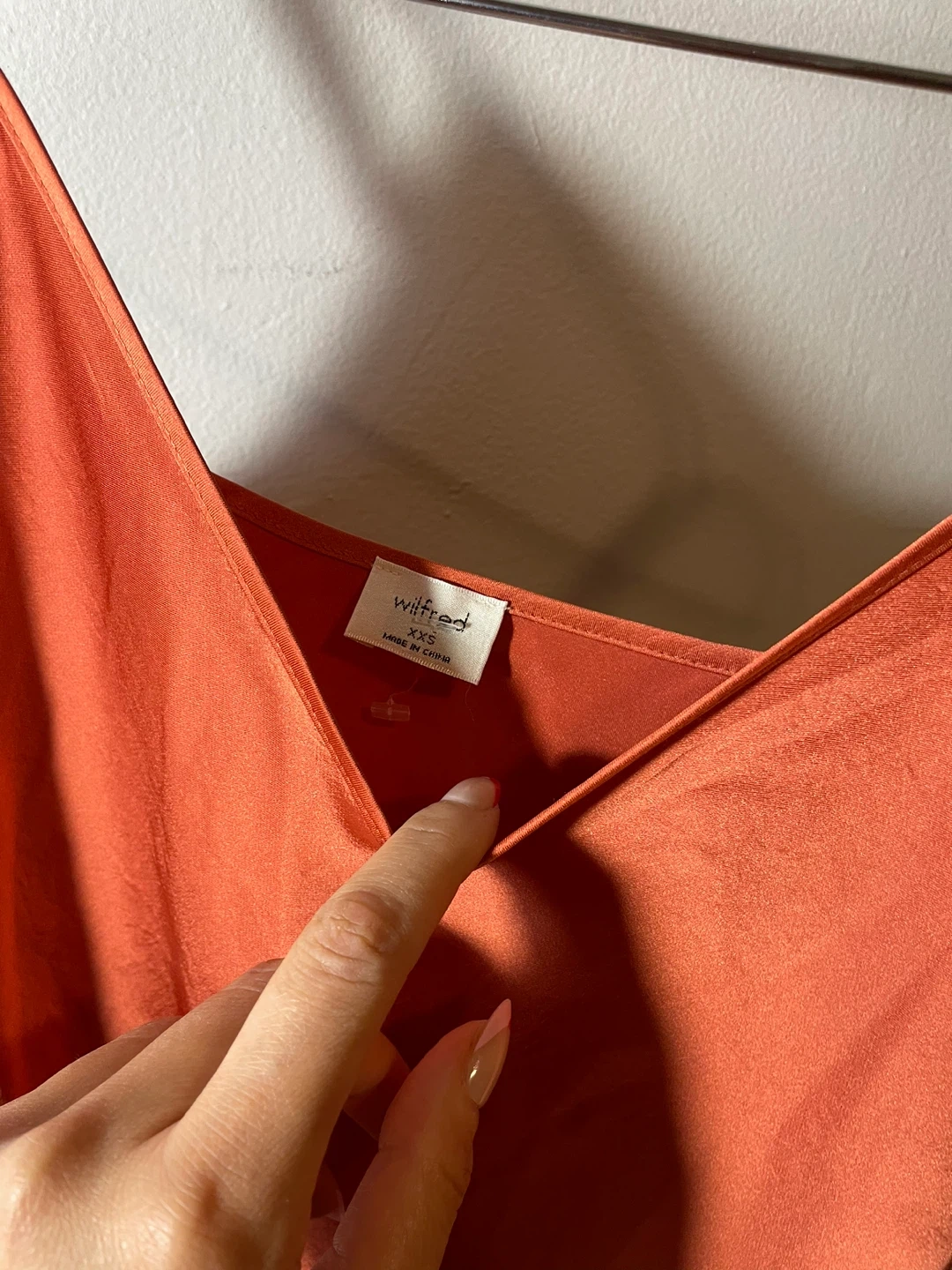 299Selling a Wilfred Free slip dress in a beautiful orange colour. It's a size large and in great condition. Perfect for a night out or a special occasion! If ad is still on is AVAILABLE Pick up at Dufferin and st Clair See my other listings for a bundle pricing if interested in another item :) Cash only. Price is firm unless you want more than 1 item - Items can be only put on hold with a deposit, otherwise first come first serve basis. If you are interested to try on something let me know and we can arrange Follow my ig page Relove.ca for more videos