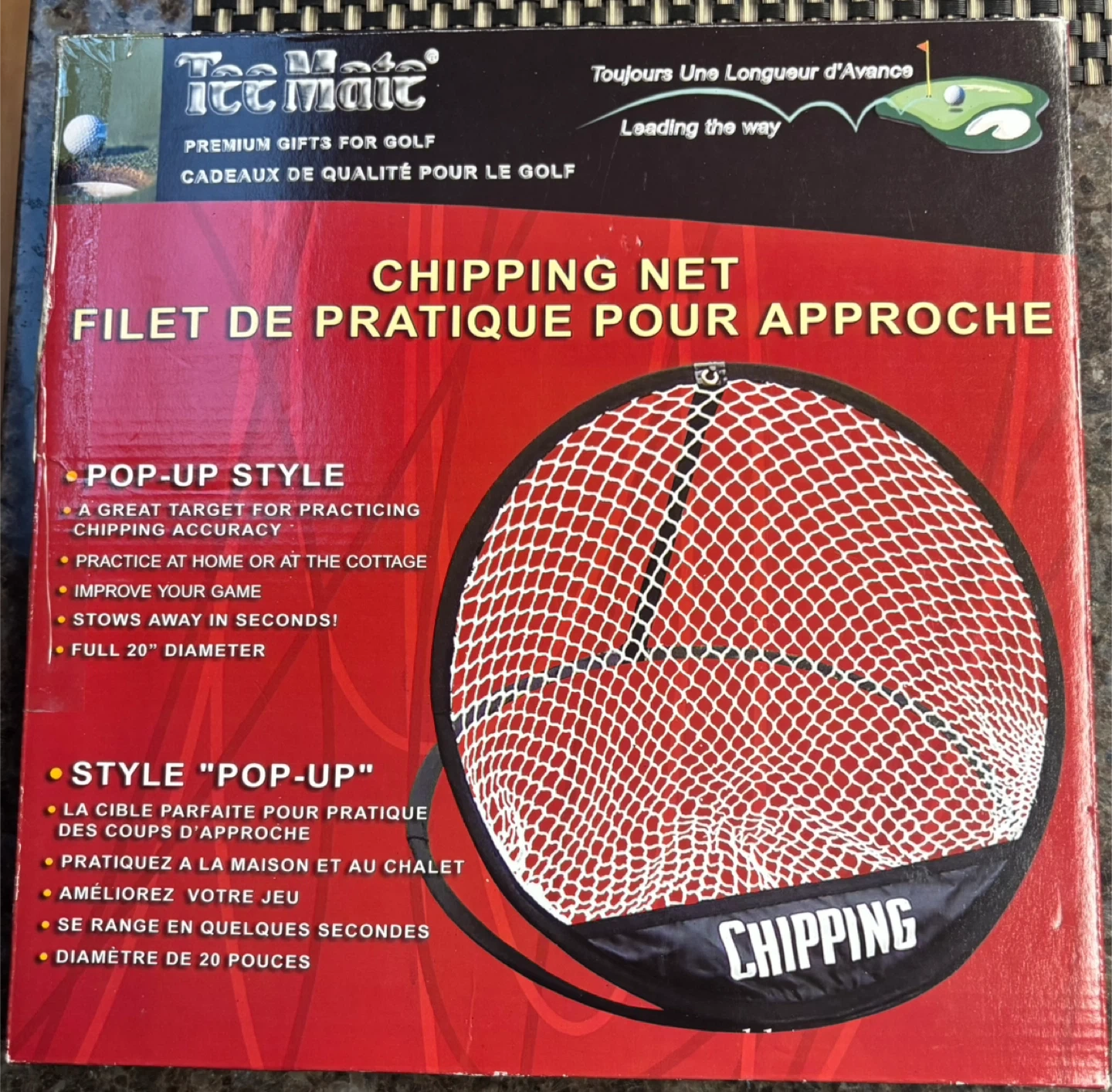 60Get your golf game on with this TeeMate chipping net! It's perfect for practicing your chipping accuracy at home or at the cottage. The net pops up easily and stows away in seconds. It's a great target and improves your game. It's a full 20" in diameter and ready for you to start improving your short game!