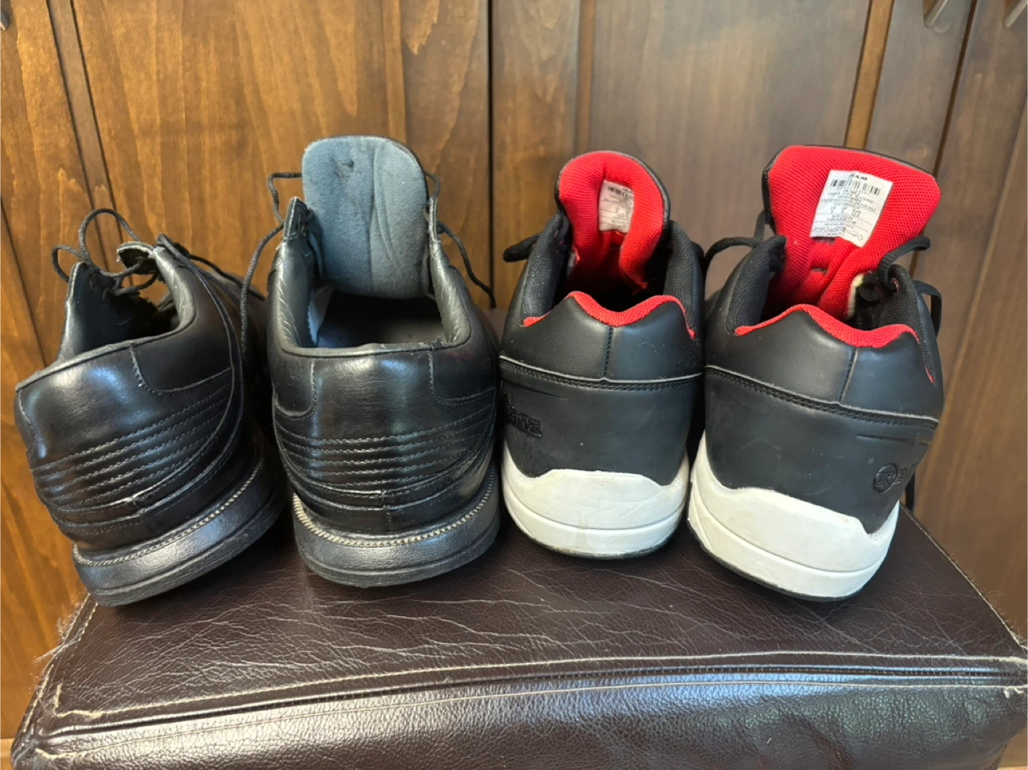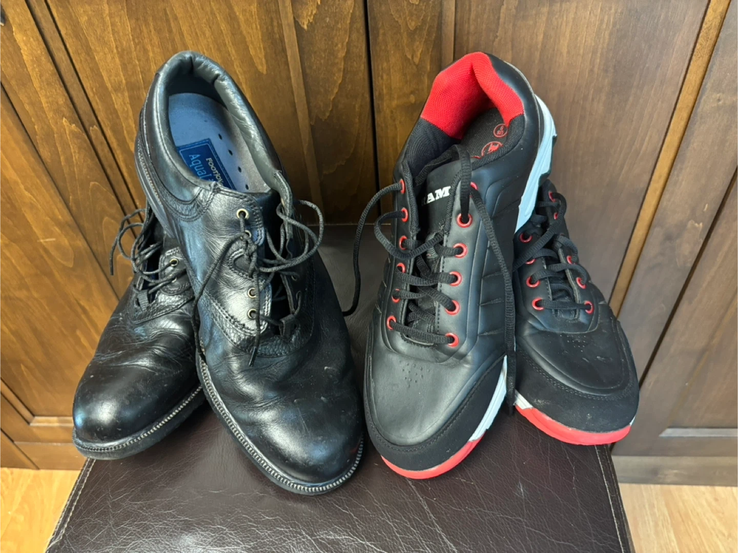 60Two pairs of golf shoes for sale. One pair is Footjoy Aqualites. Size 9.5 The other pair is like new Ram. Size 9 Two pairs for the price of one. BOGO