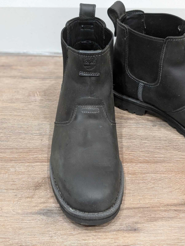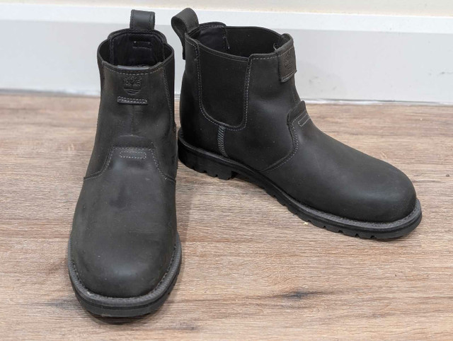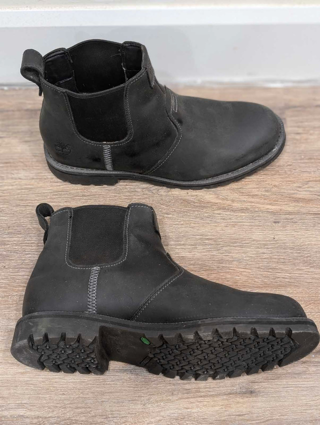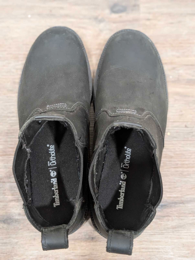 Timberland Chelsea Ortholite boots (Size 9.5) Classic Chelsea boot design with easy slip-on elastic side panels Cushioned Ortholite insole provides superior comfort and support Durable leather upper with premium craftsmanship Non-slip rubber outsole for reliable traction in various conditions Great condition like new clean, and ready to wear. Can deliver within Hamilton for an extra $10, check out my other listings!