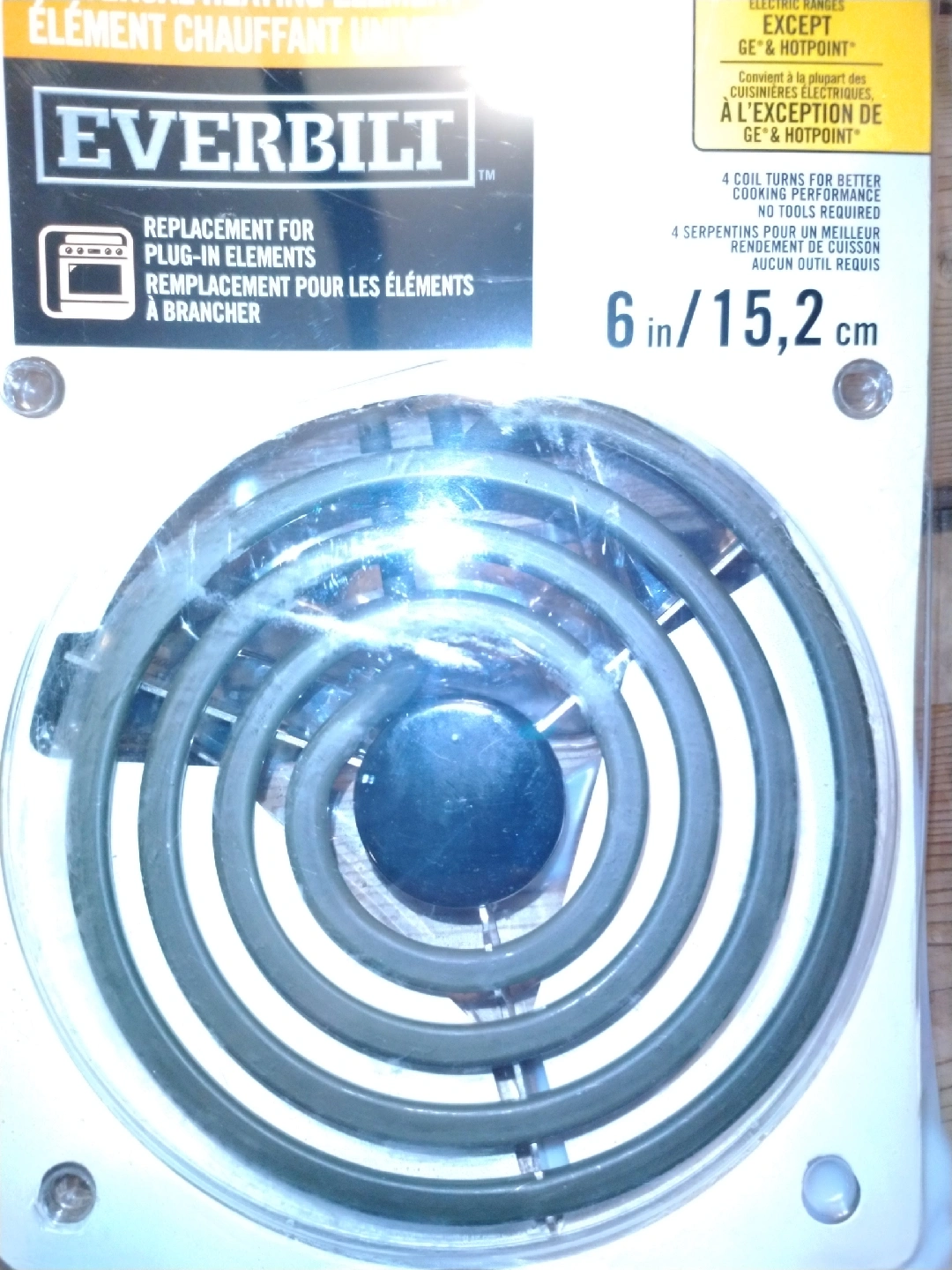 I'm selling a brand new Everbilt 6 inch plug-in element for electric ranges! It's a replacement element that is convenient for electric ranges, except GE and Hotpoint. It has 4 coil turns for better cooking performance and no tools are required. The packaging is included