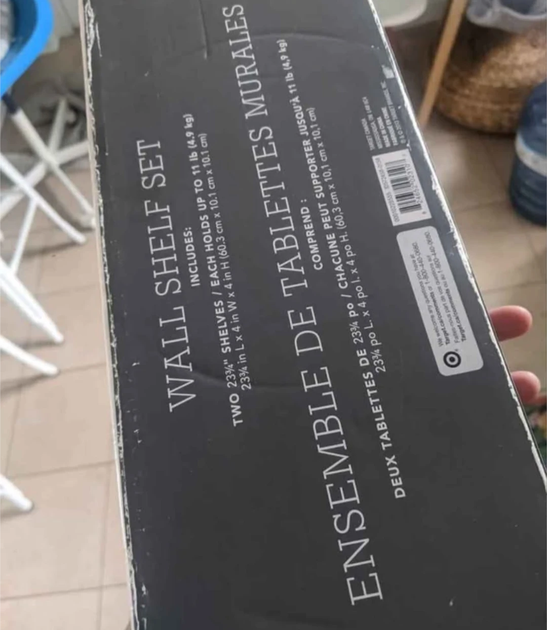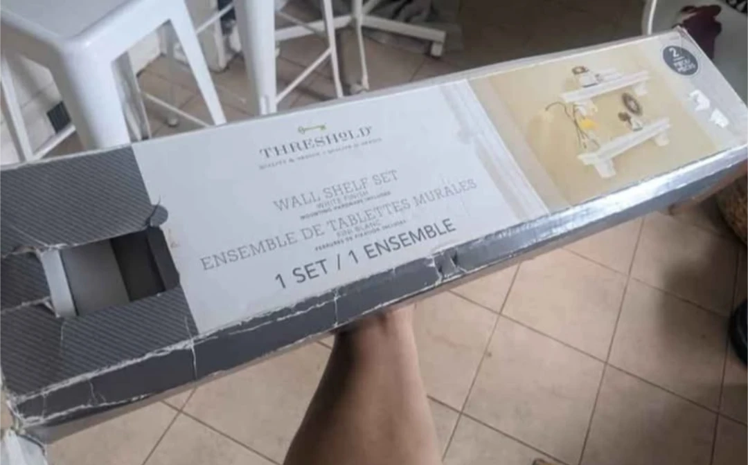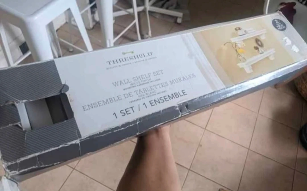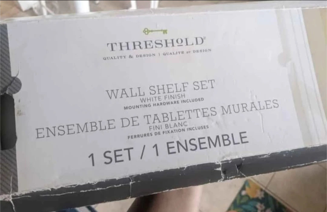 Selling a brand new Threshold wall shelf set in white finish! This set includes two 23 3/4" shelves that can each hold up to 11 lb (4.9 kg). Each shelf is 23 3/4 in L x 4 in W x 4 in H (60.3 cm x 10.1 cm x 10.1 cm). Mounting hardware is also included. The set is still in its original box
