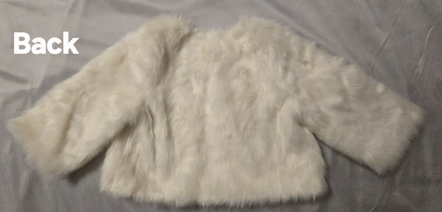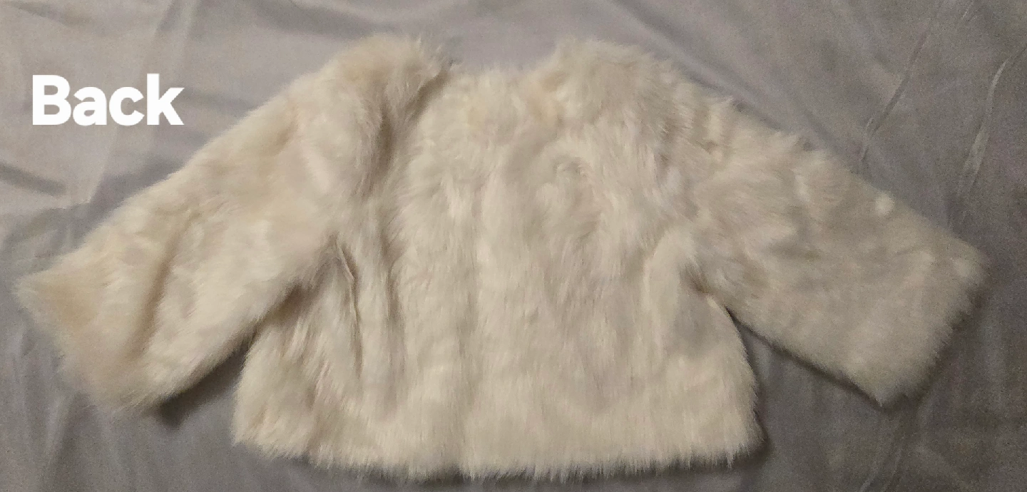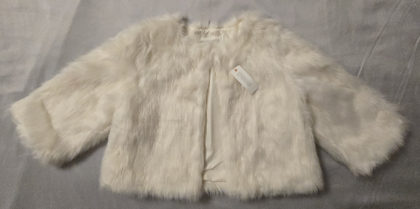 Selling a cute brand NEW Gymboree faux fur throw jacket! It's a size 10-12. The winter throw is perfect to throw over a fancy dress! Regular price is $70! Marked the price really low as there is a slight pinkish clout on the right sleeve, though it's not very noticeable!