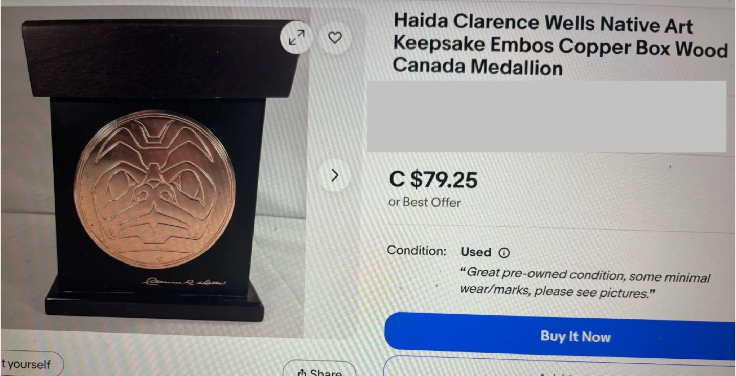 60Selling a decorative box with a copper designs on two sides by Clarence A. Wells. The box measures approximately 9 inches tall and 7 inches wide. It's a classic indigenous piece that would look great in any home!